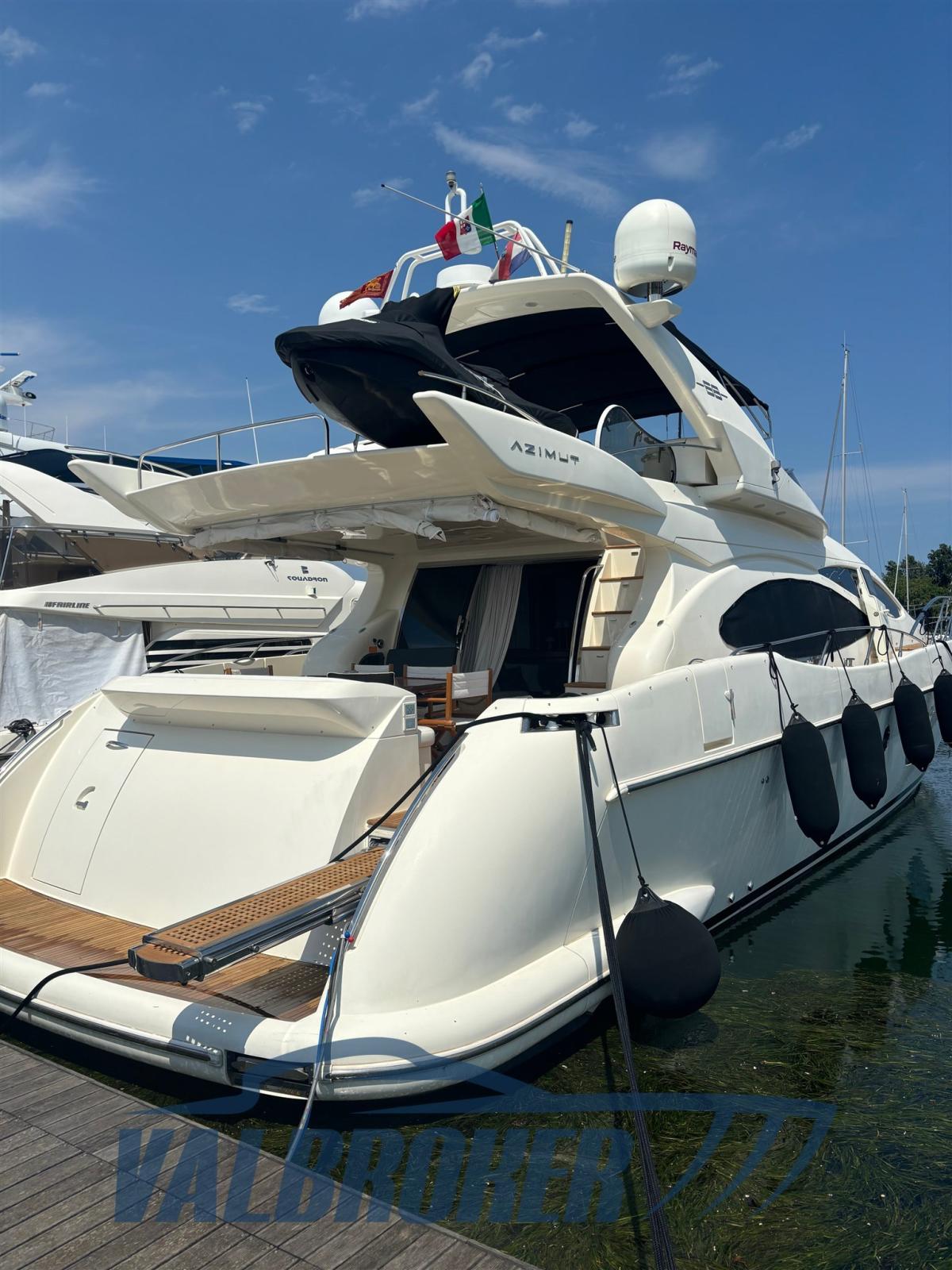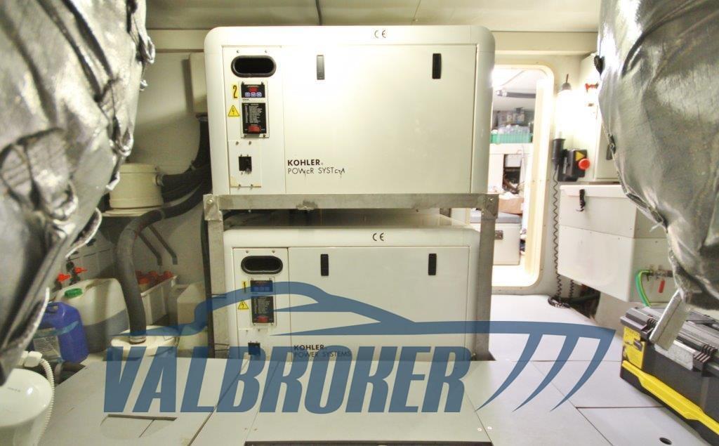 Autoclave, 12 Batterie (Nuove), Camminamenti laterali in teak, Caricabatterie (Mastervolt 24V 110 aH), Faro orientabile, Flap idraulici, Gruette per moto d'acqua (Sul fly), Luci di cortesia, Luci subacquee, Passerella (A scomparsa), Piattaforma (Teak), Porta ingresso, Pozzetto Teak, Tavolo pozzetto, Winch tonneggio di prua.
