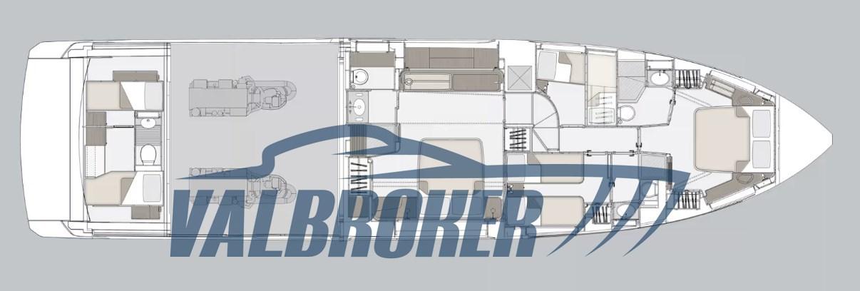 4 cabine, 4 bagni con box doccia e cabina marinaio. Mai usata per charter. Motorizzato 2x1.360 Hp MAN, trasmissione in linea d'asse. Ogni anno viene eseguito il tagliando completo a motori e generatori. Importanti e costanti lavori di manutenzione eseguiti tra il 2023 e il 2025 sono tutti documentati con fatture. 2023: pistoni flaps, revisione scambiatori, nuove tappezzerie, nuove cuscinerie, moquette, impianto FUSION e 8 altoparlanti, revisione pompa aria condizionata. 2024: sub woofer, Display Autopilota RAYMARINE ,VHF RAYMARINE RAY91. 2025: lucidatura completa gelson, trattamento completo teak, revisione zattera Arimar, tagliando dissalatore, nuovo display boning per fly, revisione oscuranti (rete bianca e nera), nuovo caricabatterie, nuovo cavo banchina.