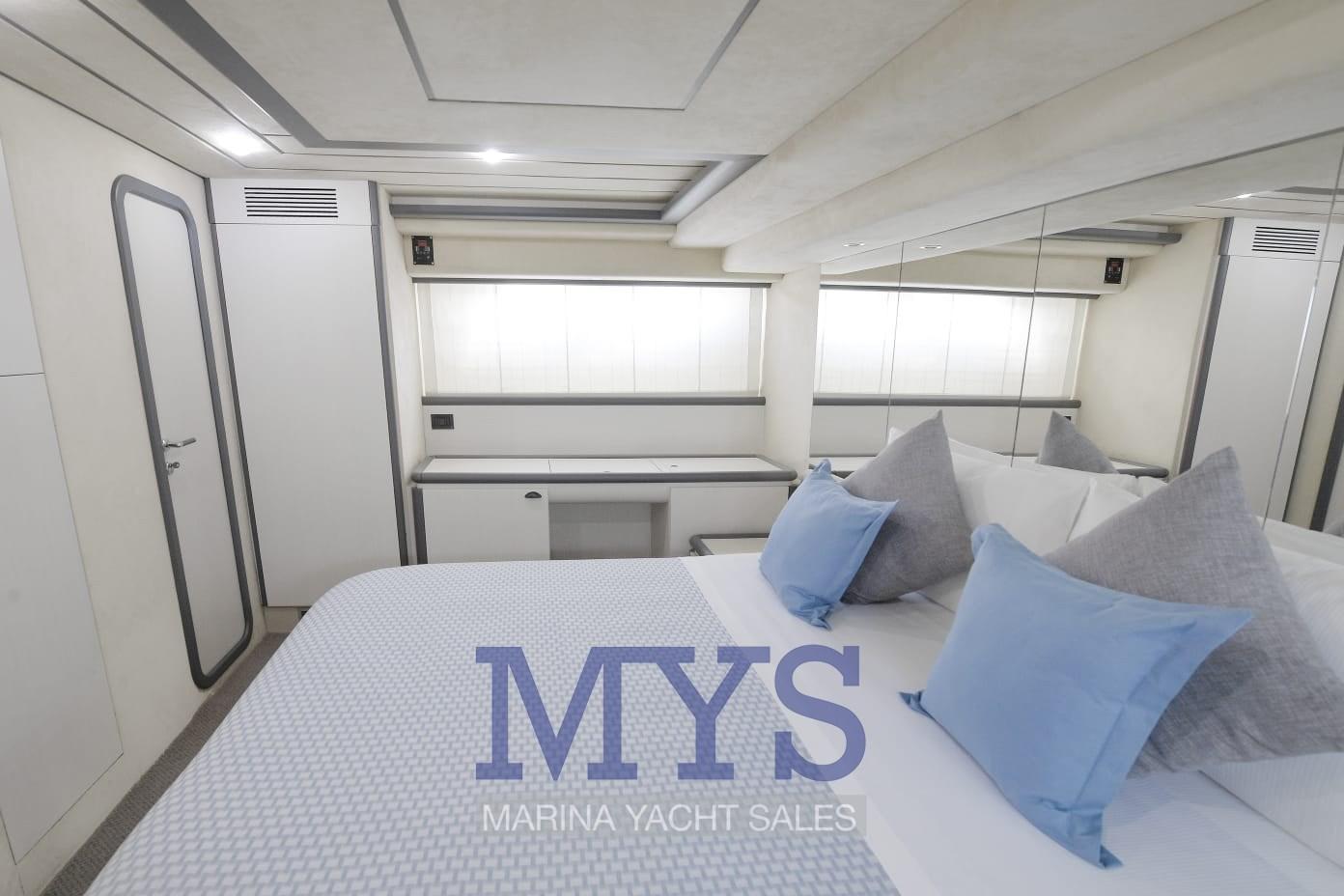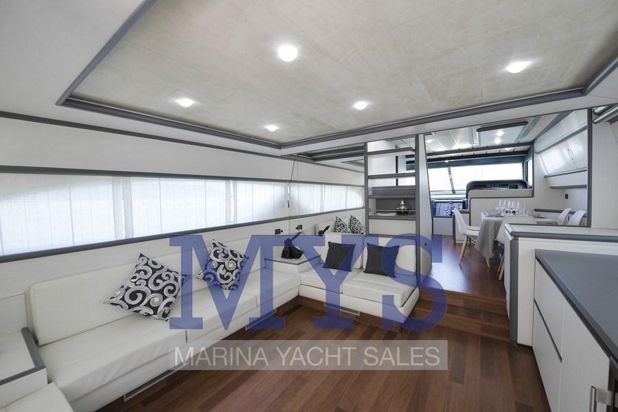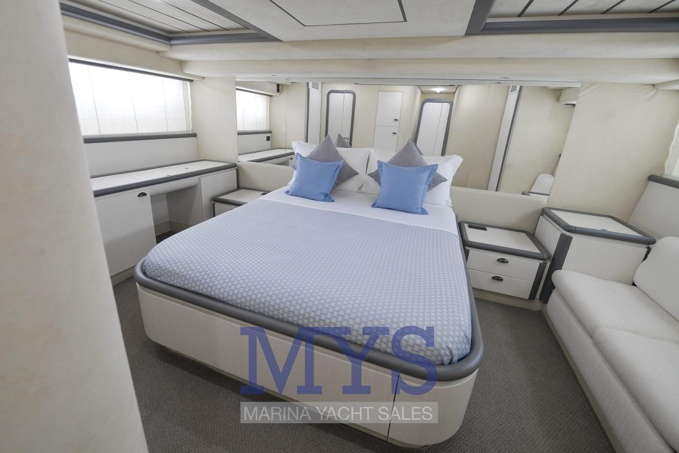 Allarme motore, Doccia esterna, Doppia timoneria, Flap idraulici, Gruette per tender su fly, Impianto antincendio, Indicatori Flaps, Lavaggio catena, Luci di cortesia, Luci subacquee, Passerella, Piattaforma, Pompa di sentina automatica, Porta ingresso, Porta laterale, Pozzetto Teak, Presa 220V banchina, Presa acqua banchina, Raddrizzatore, Ripetitore strumentazione, Rollbar, Salpa Ancore Elettrico, Scaletta da bagno, Tavolo pozzetto, Tromba.