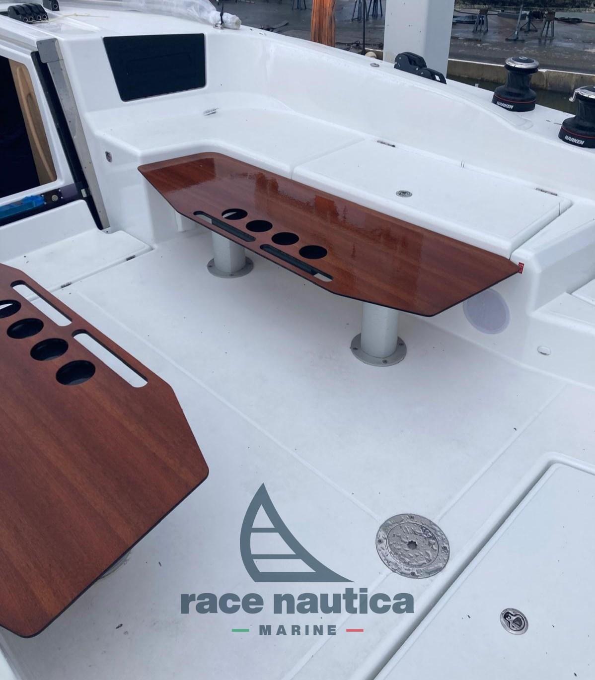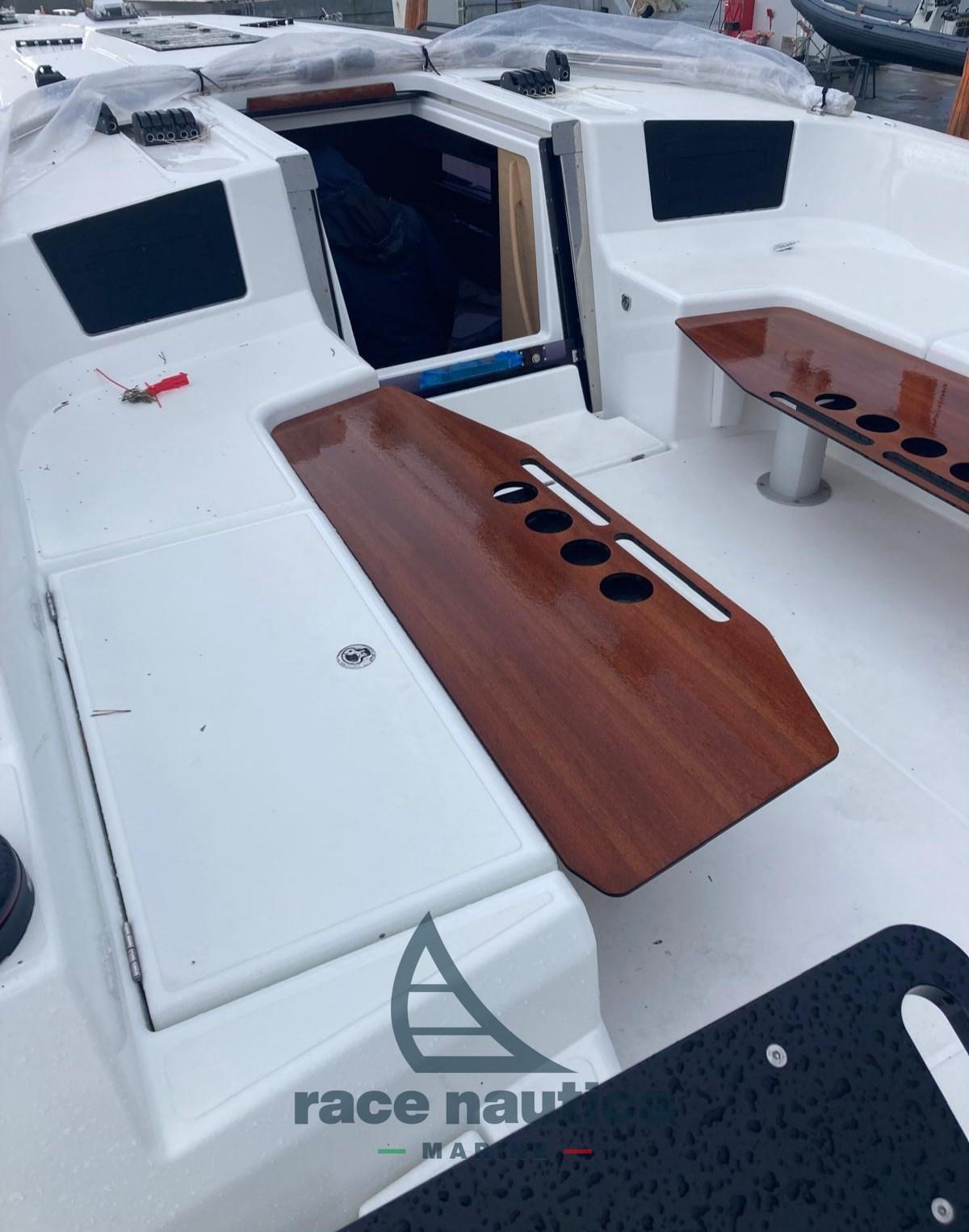 Pullman invece dello storage a sinistra, elica di prua a tunnel, motore Yanmar 80hp saildrive, lazy bar, lazy jacks, randa con stecche e fiocco autovirante, vang rigido, scotta randa sulla tuga senza transranda, rinvio in pozzetto delle bozze terzarolo, doccia in pozzetto (calda/fredda), tavolo pozzetto con stivaggio, salpa ancore 2000w, caricabatterie 90A, impianto 220v, presa per banchina e barca, inverter 1600w, boiler 40l, pompa acqua di mare elettrica, pompe dolce automatiche, testata del letto con imbottitura nella cabina di prua, Genoa dacron invece del fiocco autovirante, 2 winch t50 a poppa, rotaie genoa + scotte, altri 2 winch t50 sul paramare per german system con scotta randa, attrezzatura per gennaker, impianto stereo kit fusion RA 70 bluethoot con 2 altoparlantinel pozzetto e 2 in dinette, barbecue a gas a poppa, lavandino, sprayhood con tientibene, caricatore induzione per cellulari, apertura assistita elettricamente dalla piattaforma di poppa, supporto motore fuoribordo, cuscineria di pozzetto con schienali, un ripetitore Triton modello 2 a sinistra ed un ripetitore Triton modello 2 multifunzione a destra, VHF V100, pilota automatico con pistone idraulico, GPS chartplotter Zeus 3 da 9” a destra sul porta strumenti posto del ripetitore Triton 2, preparazione scafo + antivegetativa colore nero, Winch elettrico T50 sulla tuga a destra,bimini ripiegatile, protezione prua in inox, kit ancoraggio, differenza per 50mt di catena al osto della cima, interni standard, WC elettrico a prua.