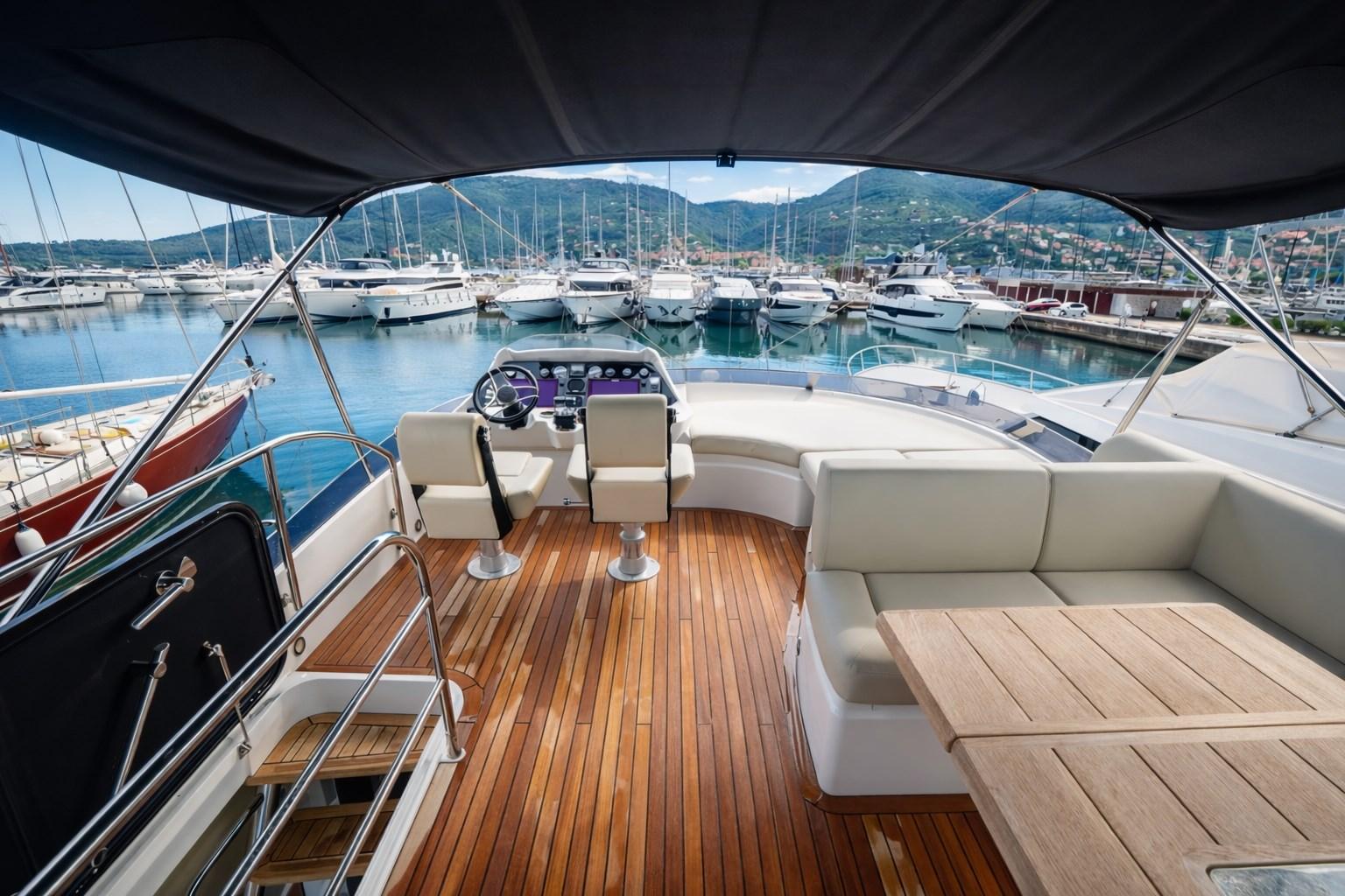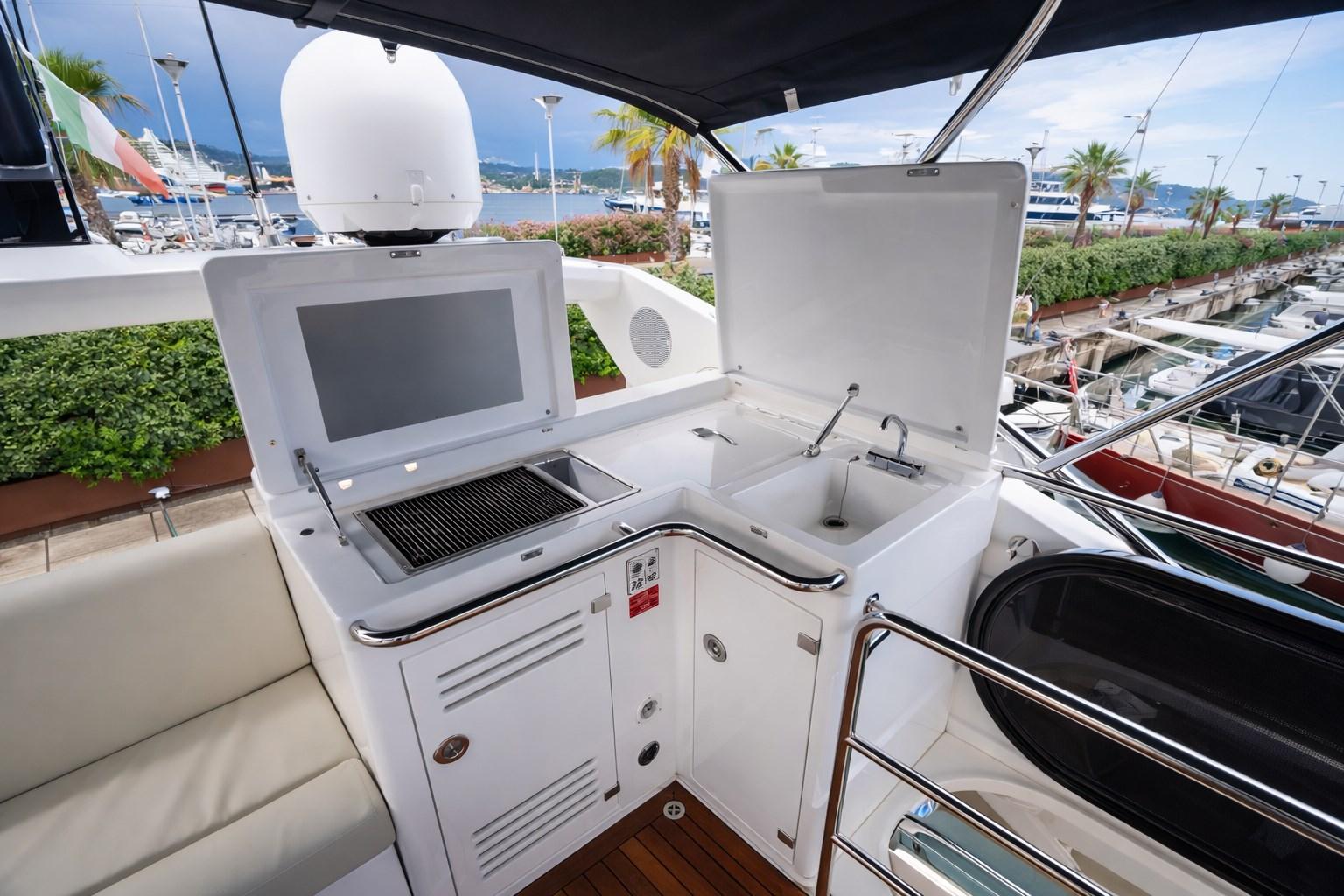 Allarme fumo/gas, Allarme motore, Allarme sentina, Camminamenti laterali in teak, Doccia esterna, Flap elettrici, Luci di cortesia, Luci subacquee, Passerella, Piattaforma, Pompa di sentina automatica, Pompa di sentina manuale, Ponte in teak, Porta ingresso, Pozzetto Teak, Presa 220V banchina, Presa acqua banchina, Salpa Ancore Idraulico, Scaletta da bagno, Tavolo pozzetto, Winch tonneggio di poppa.