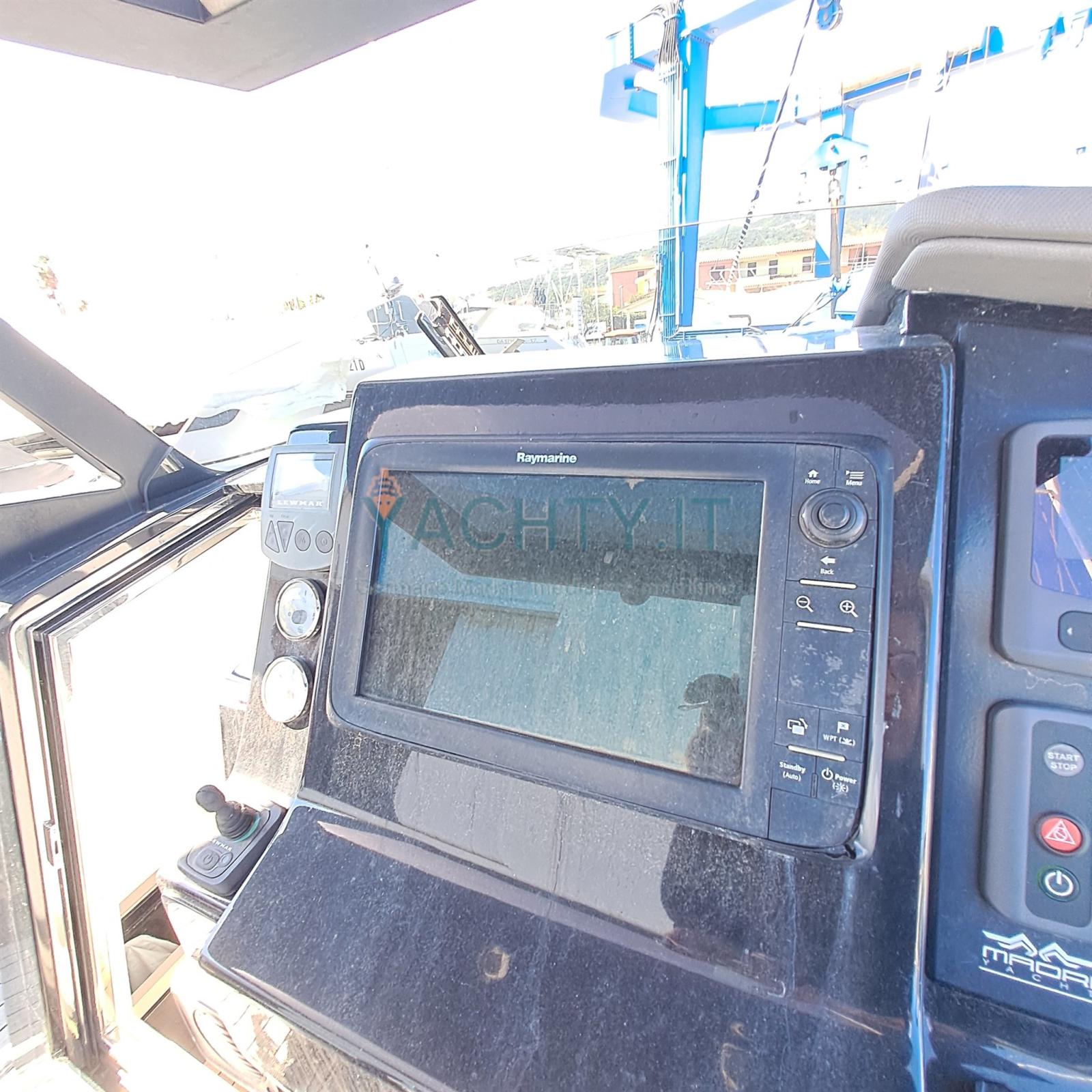 Antenna radar, Comando motori elettronico, Monitor dei consumi (Yanmar), Plotter con antenna GPS (Raymarine).