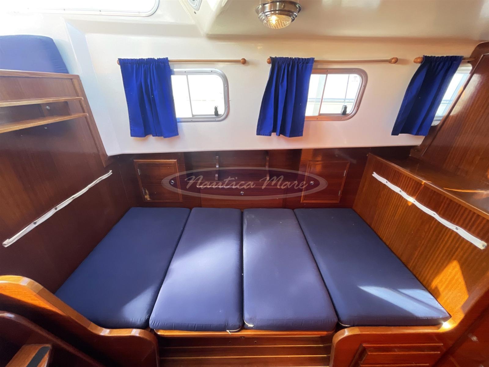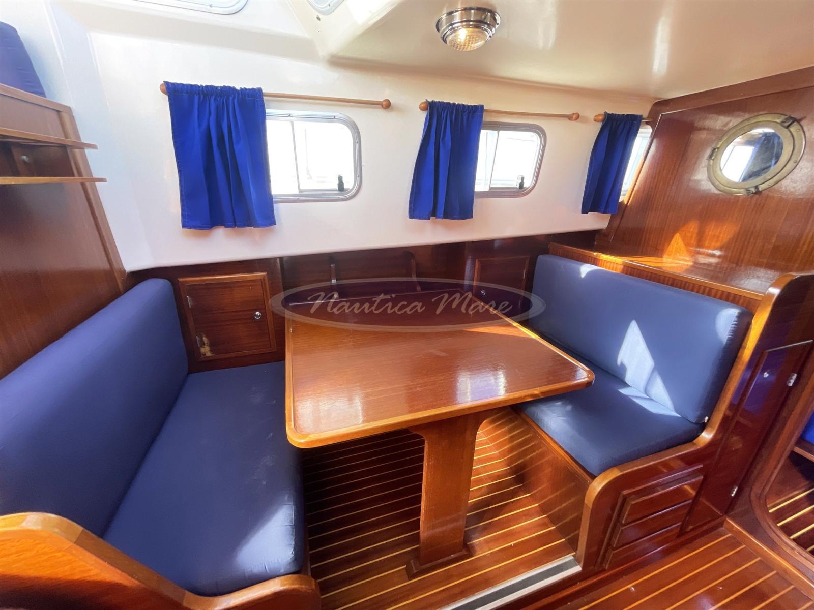 Imbarcazione tradizionale, tipica delle Isole Baleari, il Menorquin 45L in vendita è una comoda "casa galleggiante" che racchiude in solo 9 metri generosi spazi sia esterni che sottocoperta. Da poppa verso prua troviamo una comoda scaletta per la risalita dal mare con plancetta bagno ed una altrettanto comoda passerella pieghevole in acciaio e legno per lo sbarco/imbarco da terra. Il pozzetto con la poppa arrotondata ospita due sedute laterali complete di cuscinerie, protette da un grande tendalino parasole montato su arco in acciaio inox retrattile. Gli ampi camminamenti walk around laterali portano velocemente ed in totale sicurezza verso prua, verso il verricello con àncora e catena e verso l'ampia zona prendisole completa di cuscineria. Nel pozzetto, la grande porta in legno e vetri completamente apribile mette in comunicazione l'esterno con l'interno dell'imbarcazione. Gli interni sono ampi e luminosi, dal sapore classico, marino, con molto legno e cuscinerie blu. Il timone una vera e propria opera d'arte. I posti letto totali sono 4/5 di cui 2/3 nella cabina a V di prua, 2 nella dinette trasformabile. I due ambienti sono separati da una porta in legno. Anche il bagno è separato e dotato di doccia e lavandino, la cucina completa di lavello, frigorifero, fornello elettrico. La postazione di comando completa di comoda seduta ha al proprio fianco un divanetto per 2/3 ospiti. La strumentazione elettronica di navigazione è completa e moderna: Gps Raymarine Axiom 9 di ultima generazione, ecoscandaglio, radio vhf, pilota automatico, radar. Anche la strumentazione dei motori Yanmar è completa e funzionante. I 2 motori Yanmar turbo diesel in linea d'asse da 88 hp cadauno, con 1240 ore di funzionamento, sono ben curati e mantenuti. La velocità massima è di circa 10 nodi, la crociera 8,5. I consumi di gasolio sono molto bassi. L'autonomia generosa consente lunghe e confortevoli traversate senza sosta. Ne consigliamo la visita!