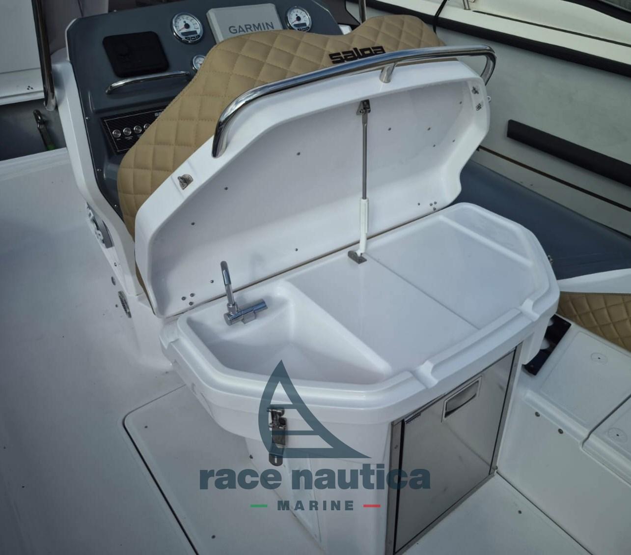 Salpa Yachts Soleil 24.5, in ottime condizioni e disponibile a visite presso Porto Verde - Scarlino (GR). Anno 2024.Motore Mercury 200HP V6 anno 2024 - con circa 140 ore - ancora in garanzia fino al 2027.Peso senza motore pari a 1100 KG, Peso motore 216 KG.Acciai abbastanza lucidi, tendalini in buone condizioni, prese a mare eccellenti, rollbar abbattibile, cuscineria completa come nuova, tavolo pozzetto, frigorifero esterno in acciaio, impianto doccia e lavello, salpa ancore elettrico con comando dalla console, Stereo BT, serbatoio acqua con autoclave e doccetta, GPS Garmin cartografico 6" + ECO, GPS cartografico 9" + ECO, radio VHF, impianto doppia batteria, kit prendisole poppa, tendalino archi in acciaio, asta traino sci, copertura copri console, Teck sintetico a prua, kit prendisole a poppa, telo copriconsole e seduta guida, copia certificato CE, Dichiarazione di conformità. verrà consegnato con tagliando motore effettuato ad aprile 2026 da officina autorizzata Mercury. Effettuato report motore da officina autorizzata Mercury.