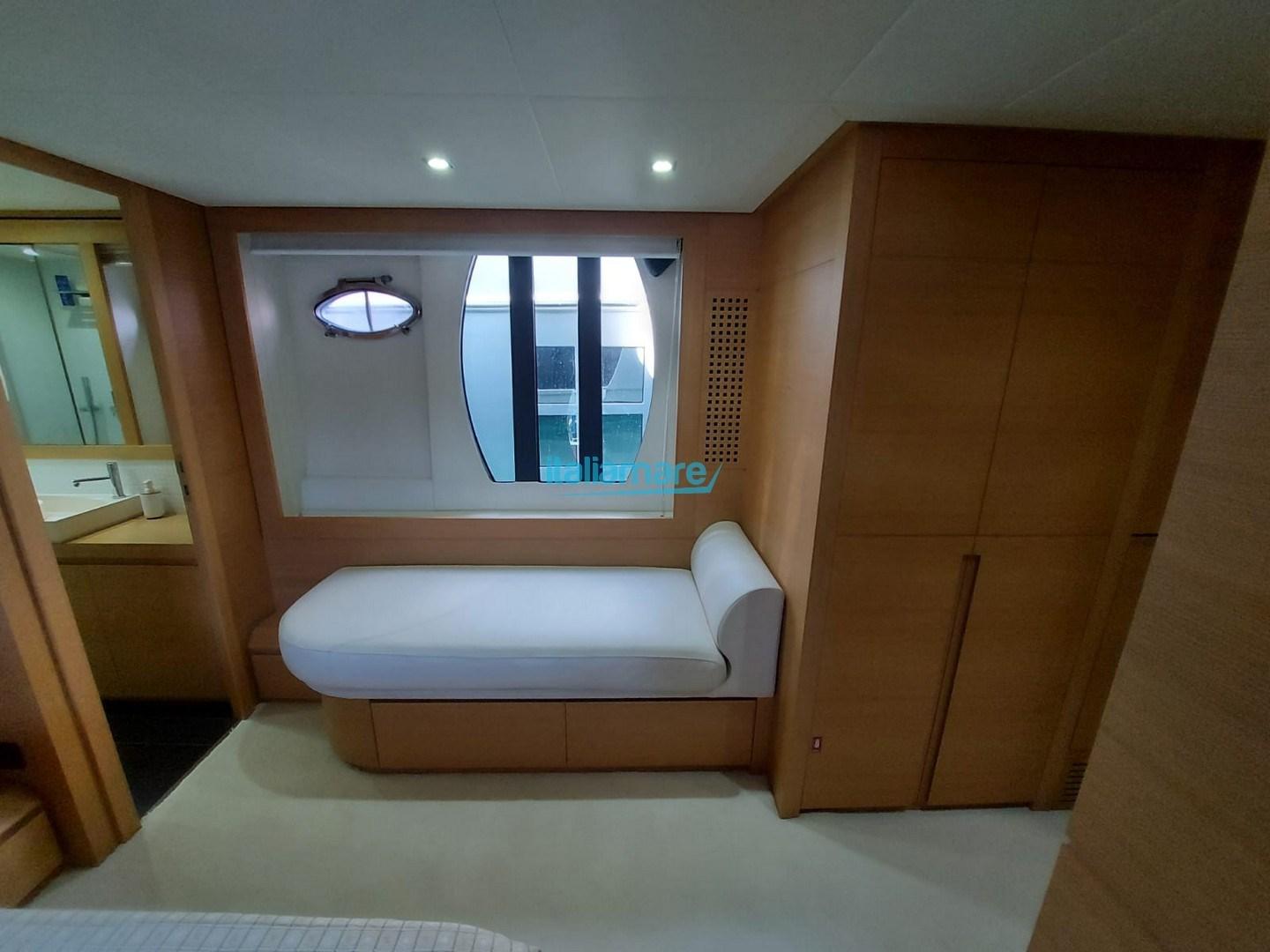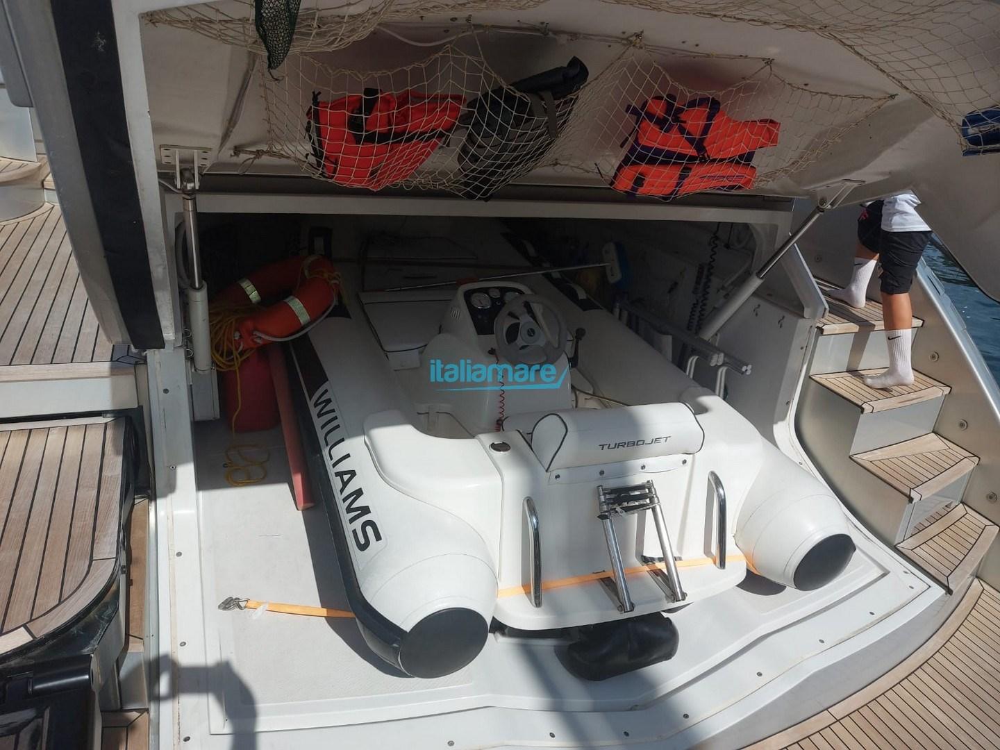 Accessori principali: Aria condizionata, Passerella idraulica, Piattaforma idraulica, Teak in pozzetto, GPS, Generatore - Pilota automatico, WC marino elettrico
