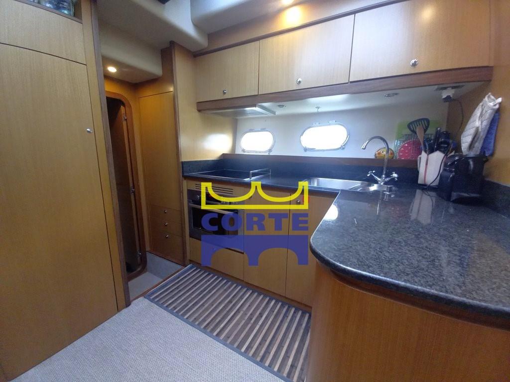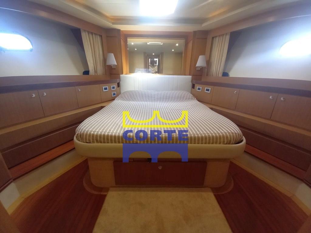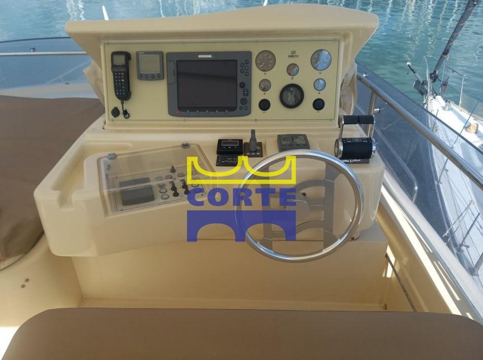 stabilizzatori giroscopici, terza stazione di comando nel pozzetto, plancetta di poppa in teak (tender lift), tavolo telescopico a prua con prendisole, fari stagni sotto plancetta, apertura laterale del pulpito,, tende doppie a pacchetto nel salone, luce camminamenti laterali, tv lcd 26" con innalzamento elettrico, freezer a cassetti, altoparlanti amplificati in coppia sul fly, Dome vuoto, cappa aspirante sopra fuochi cucina, coperture cuscinerie esterne complete color tuga.