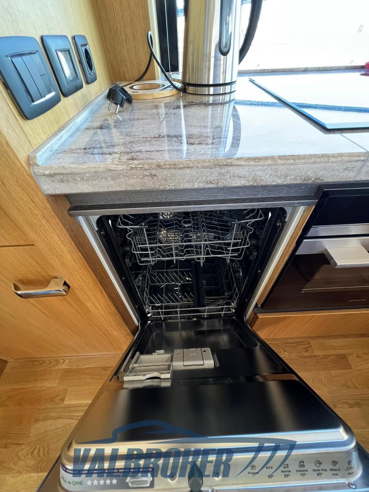 Frigorifero esterno (sul fly, 62l isotherm), Frigorifero interno (270l), Lavasciuga, Lavastoviglie.