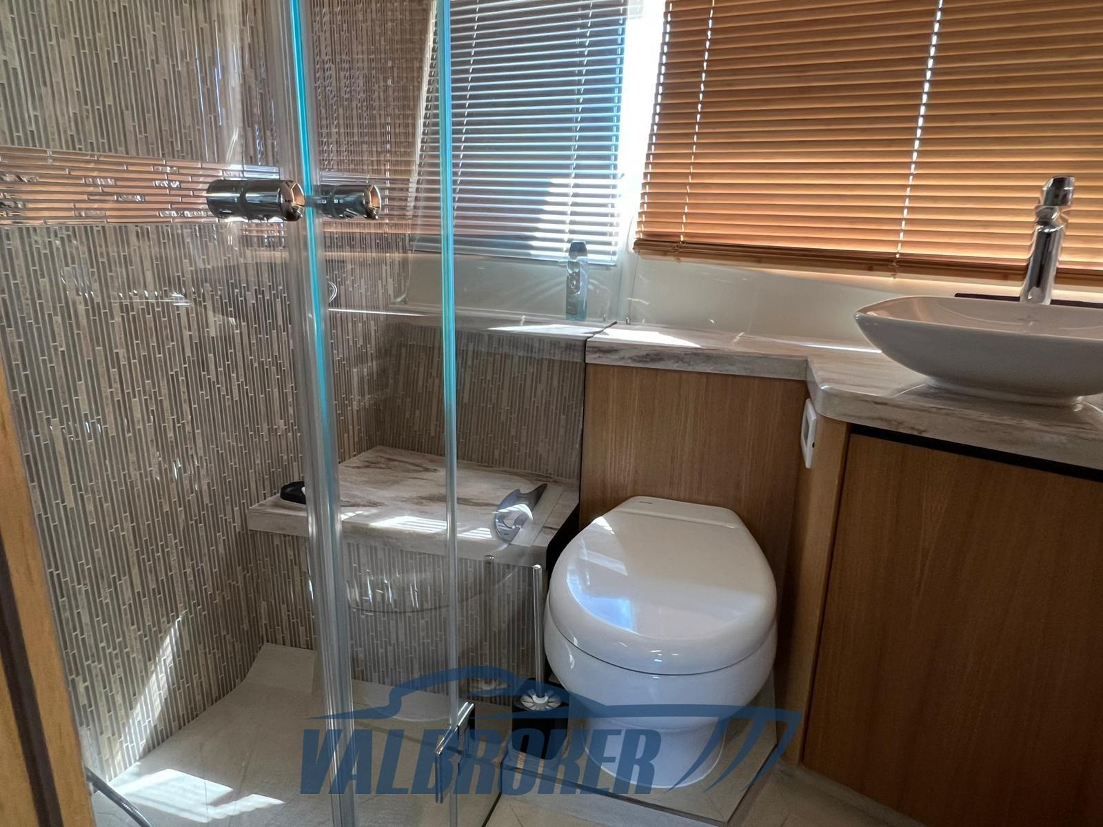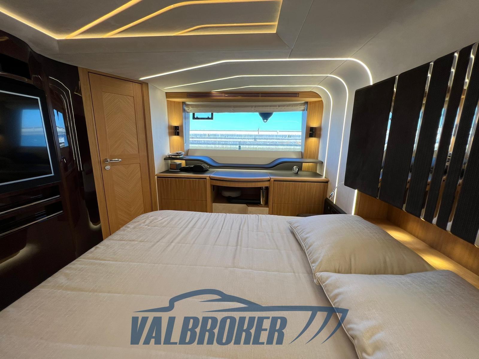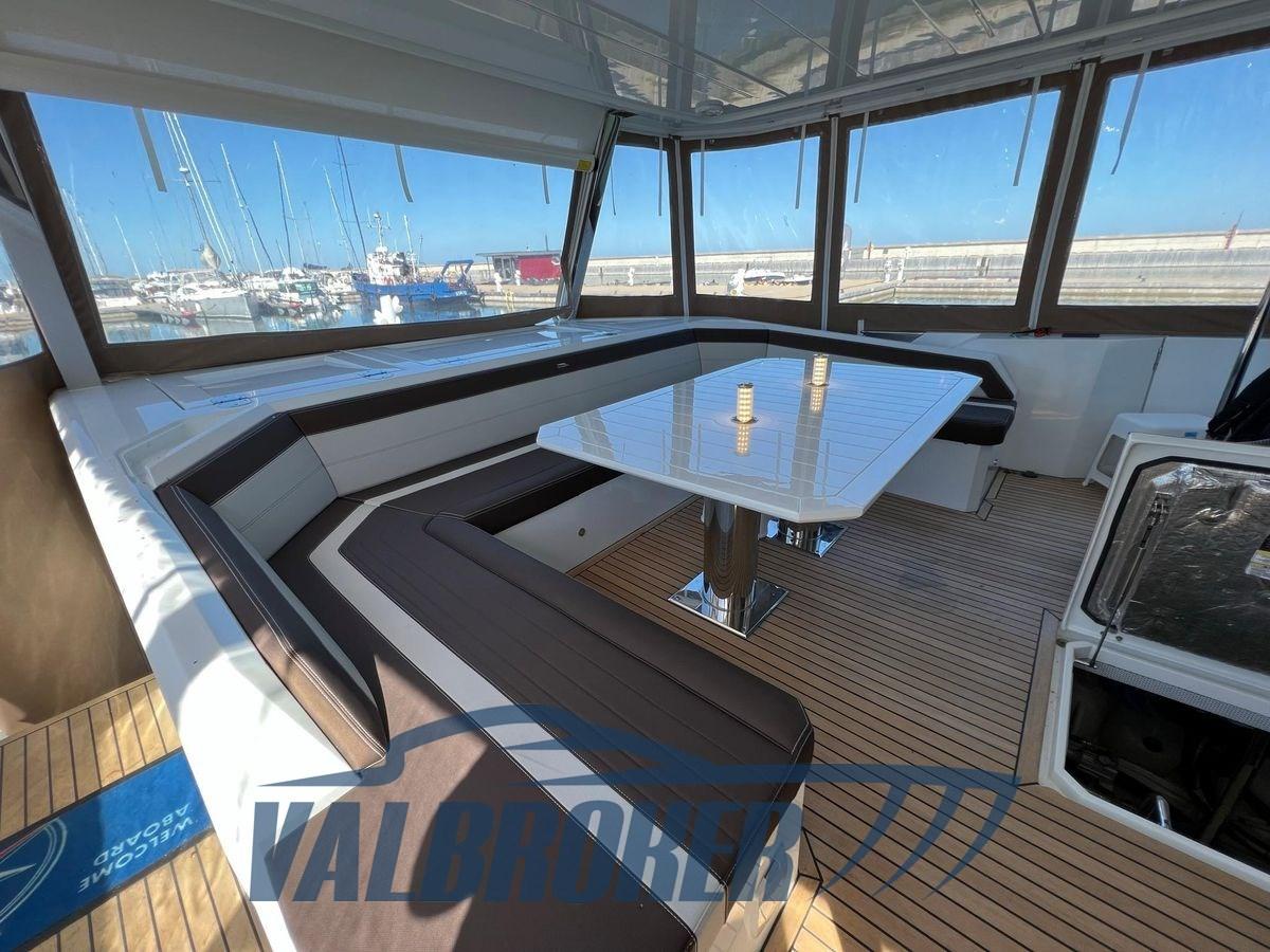 Una cabina armatoriale a tutto baglio con il proprio bagno privato ha un ingresso separato dal salone. La cabina VIP è situata a prua e due cabine doppie attrezzate, l'altra con bagno privato. L'hardtop è dotato di capote ad azionamento elettrico per consentire sole/ombra.