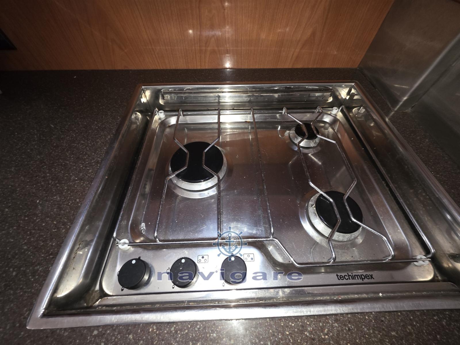 Boiler, Indicatore del serbatoio del carburante, Indicatore del Serbatoio dell’Acqua, Pavimento interno in legno, Prese interne 12v, Prese interne 220v, WC marino elettrico.