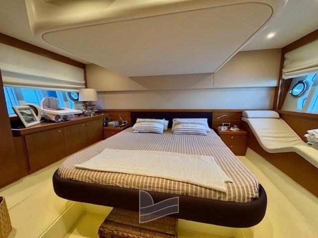 La cabina armatoriale a tutto baglio è dotata di bagno privato ed un ampio guardaroba. L'inserimento delle due grandi finestre open-view con oblò apribili sono un importante traguardo nell'ottimizzazione degli spazi ed equipara il 530 ad imbarcazioni notevolmente più grandi.