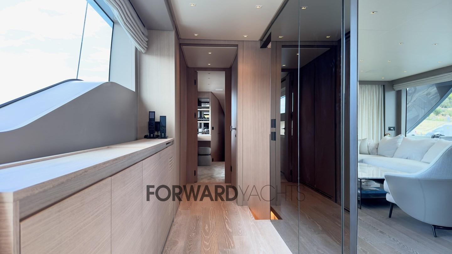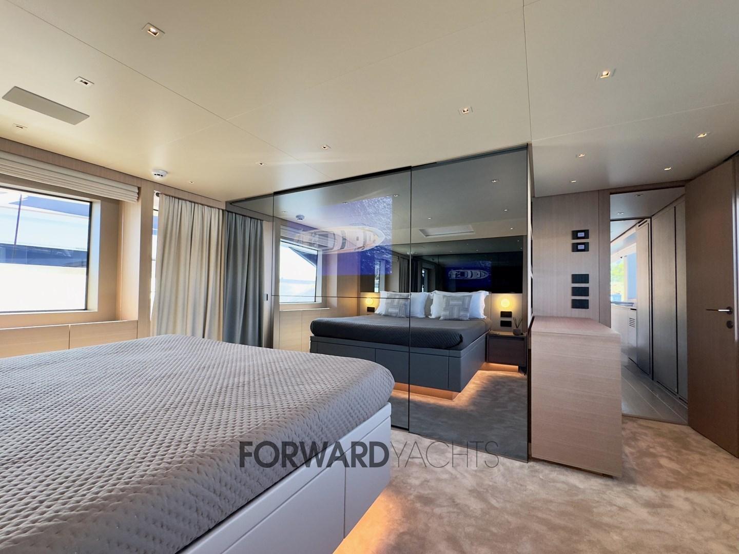 La suite armatoriale a tutto baglio, situata sul ponte principale, vanta un'ampia zona spogliatoio e accesso