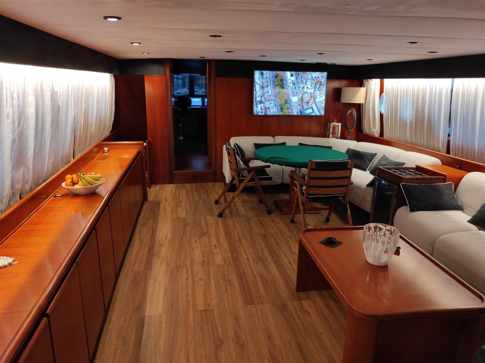Autoclave, Doppia timoneria, Flap idraulici, Gruette per tender su fly, Impianto antincendio, Passerella (A scomparsa in teak), Piattaforma (Maggiorata teak), Pozzetto Teak, 2 Salpa Ancore Elettrico, Tavolo pozzetto, 2 Winch tonneggio di poppa.