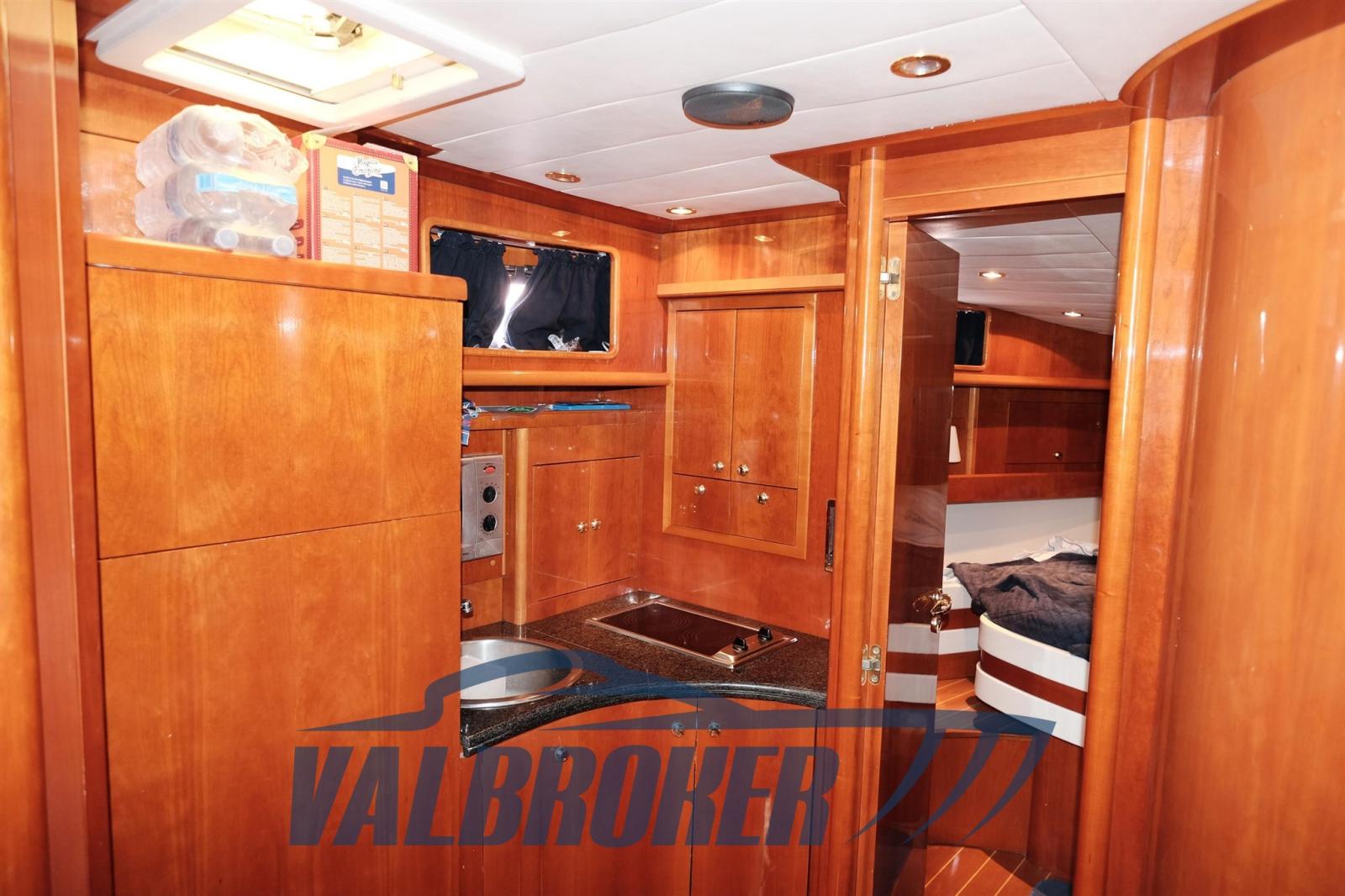 Cucina interna e angolo cottura con fornello e lavello in pozzetto. Aria condizionata, generatore, elica di prua, passerella idraulica, radar, autopilota.
