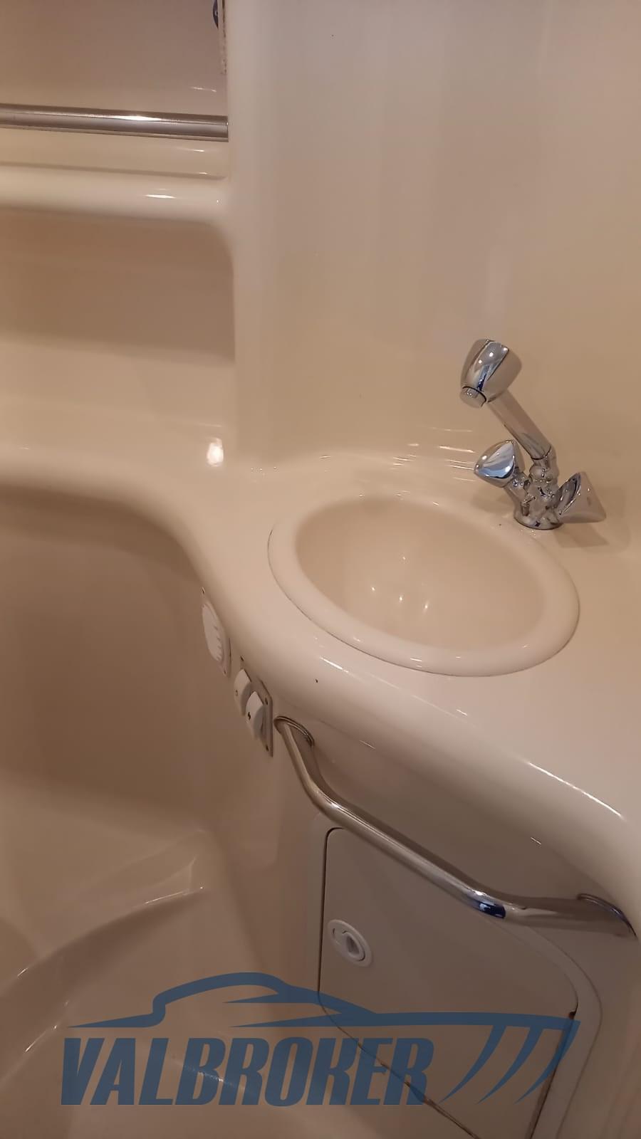 Cantiere Americano dalla linea sportiva con ampio pozzetto e spazi interni generosi. Piena altezza cabina, interni immacolati. 2x 300 Mercruiser MAG 350 V8 benzina in linea d'asse con V drive. Visibile sul Lago Maggiore presso la Marina di Pallanza. Natante non targato. Letto matrimoniale a prua, cuccetta a poppa e locale toilette separato.