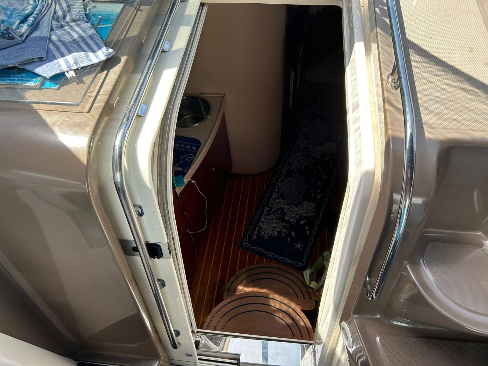 Apertura Vano Motore Elettrica, Autoclave, Colorazione speciale, Doccia esterna, Flap idraulici, Impianto antincendio, Indicatori Flaps, Lavaggio catena, Luci di cortesia, Parabordi, Passerella (Idraulica), Piattaforma, Pompa di sentina automatica, Pozzetto aperto, Presa 220V banchina, Presa acqua banchina, Rollbar, Salpa Ancore Elettrico, Scaletta da bagno, Selle per Tender, Sistema Depurazione acque nere, Supporto motore fuoribordo, Tavolo pozzetto, Tavolo Salone Abbattibile, Tromba.