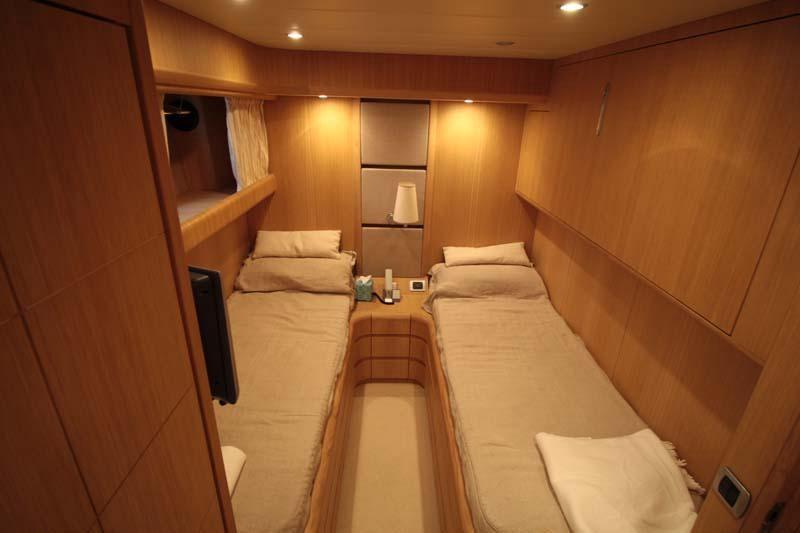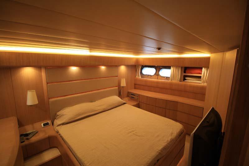 Allarme motore, Allarme sentina, Faro orientabile, Flap idraulici, Gruette per tender, Impianto antincendio, Passerella (Elettroidraulica), Ponte in teak, Porta laterale, Pozzetto Teak, Scaletta da bagno, Tavolo pozzetto, 2 Winch tonneggio di poppa.