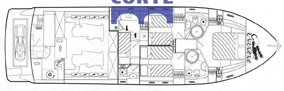 Boiler (bivalente), Cassaforte, Clima reversibile, Prese interne 12v, Prese interne 220v, Telecamera (poppa e sala macchine), WC marino elettrico.