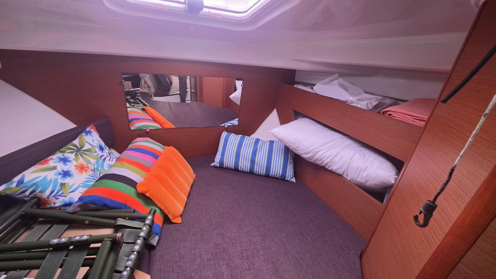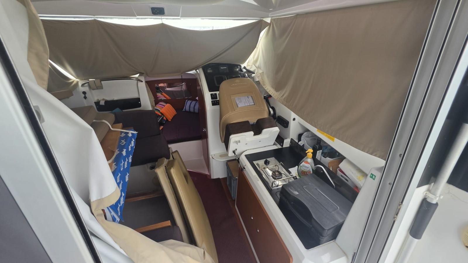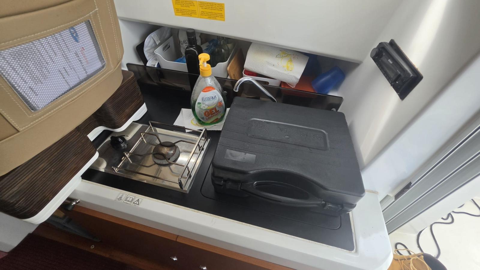 Indicatore del serbatoio del carburante, Indicatore della pressione dell’olio nel motore, Indicatore della temperatura del motore, Pavimento interno in legno, Prese interne 12v, WC marino elettrico.