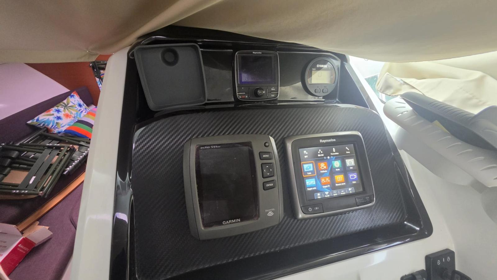 Angolo barra, Contaore, DSC vhf, Plotter con antenna GPS, Quadro comandi, Strumenti di misura per motori.