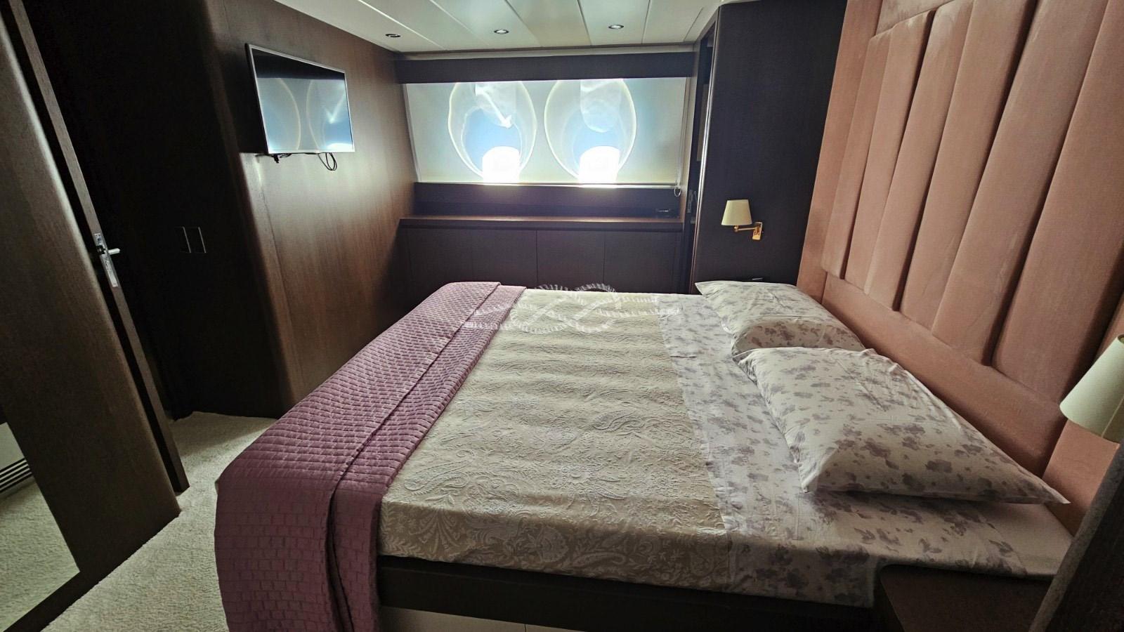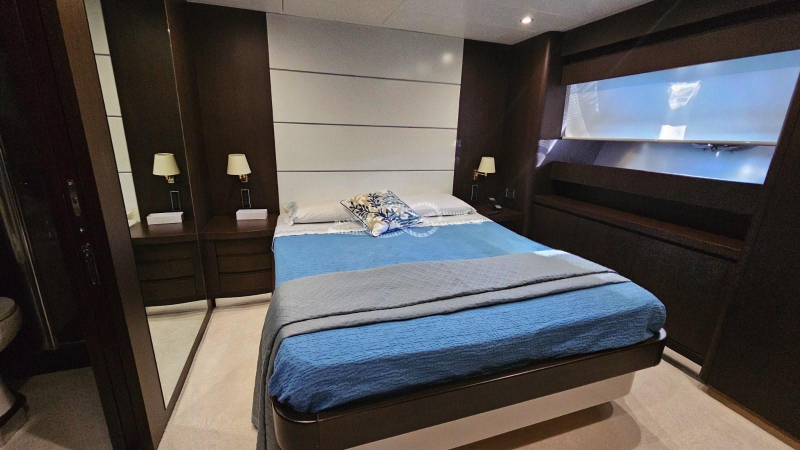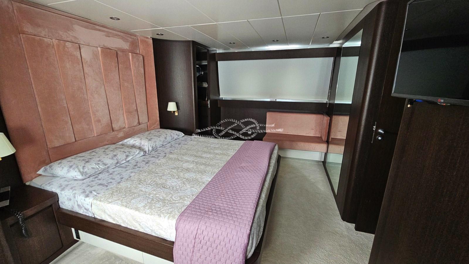 Cabina armatoriale con letto matrimoniale, cabina armadio e bagno - cabina Vip con letto matrimoniale e bagno - cabina ospiti con letto matrimoniale e bagno - cabina ospiti con due letti in piano e bagno.