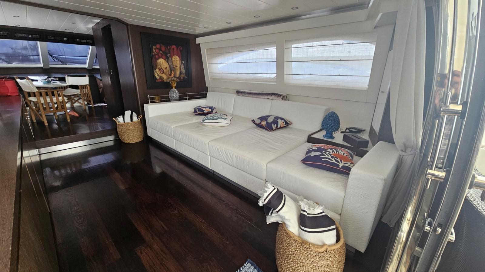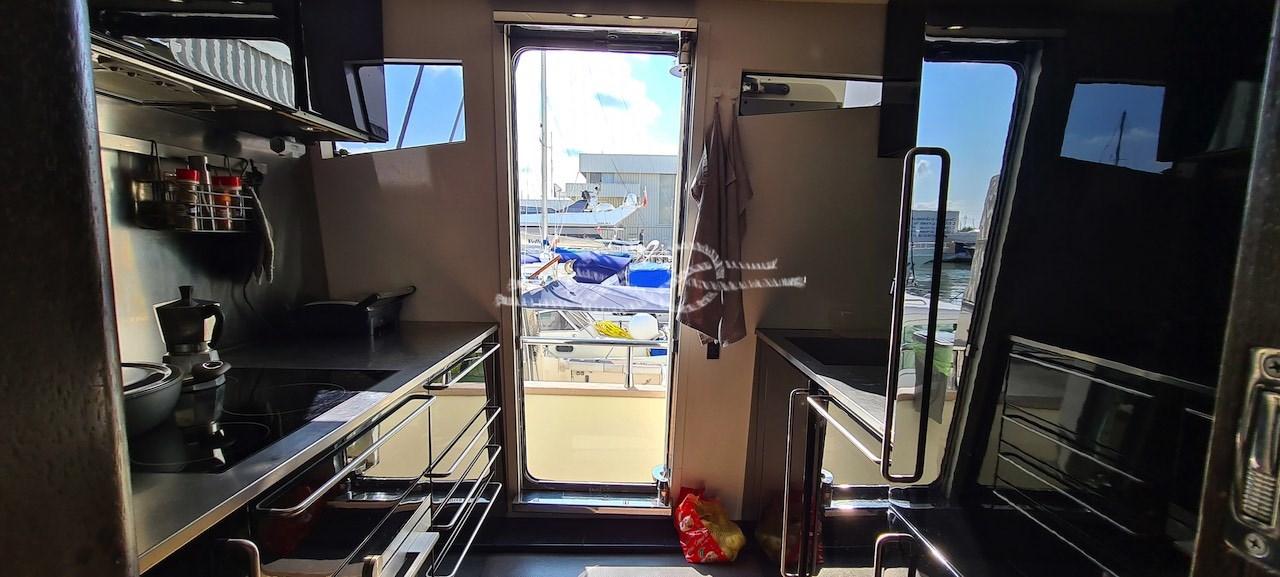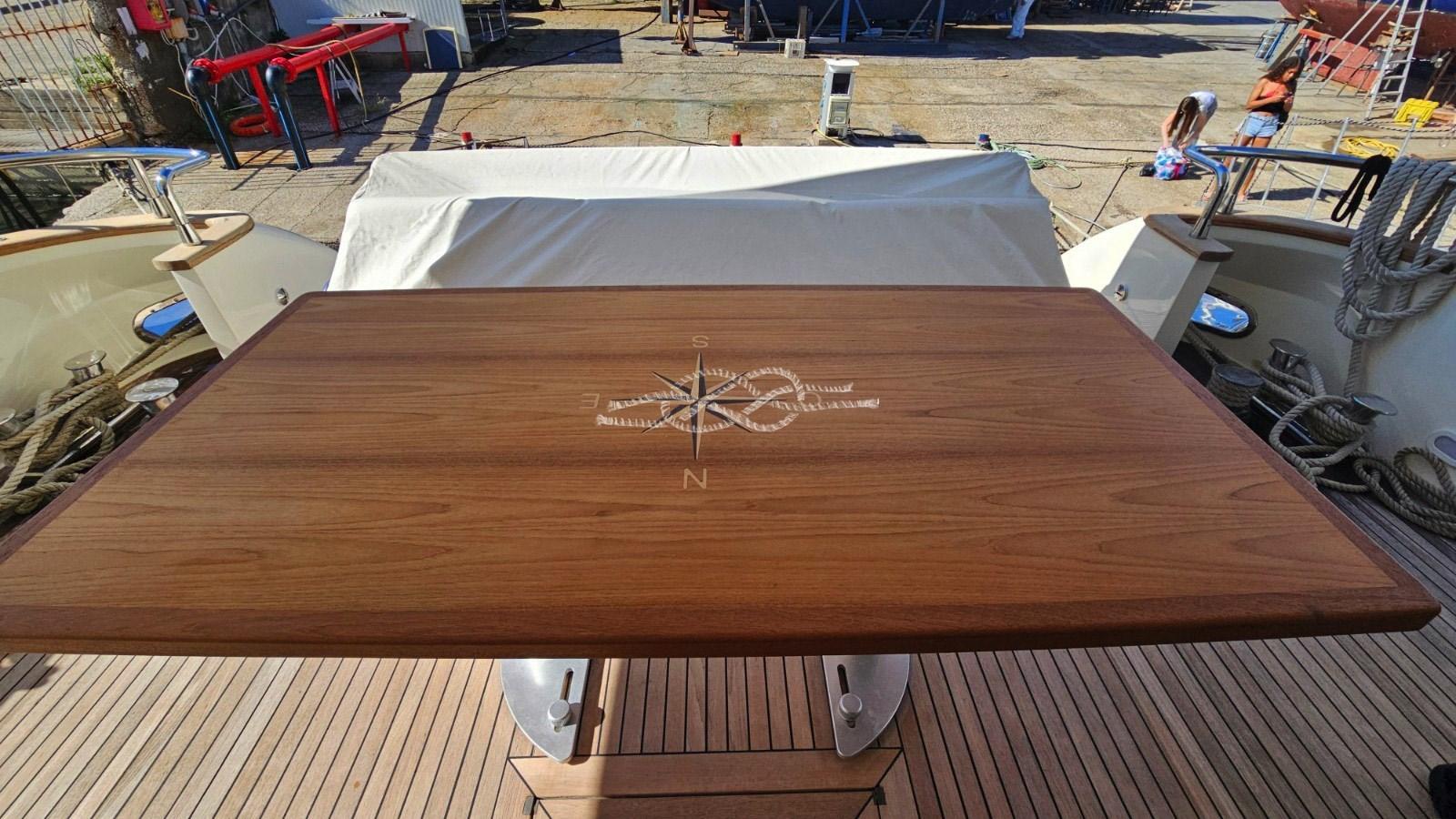 Lavori 2024: Lucidatura completa - rifacimento teak coperta di prua - assi e boccole nuovi ed equilibratura delle eliche - nuovo verricello di prua - catena ancora nuova - nuovo piano cottura ad induzione - nuovo fabbricatore di ghiaccio sul fly.