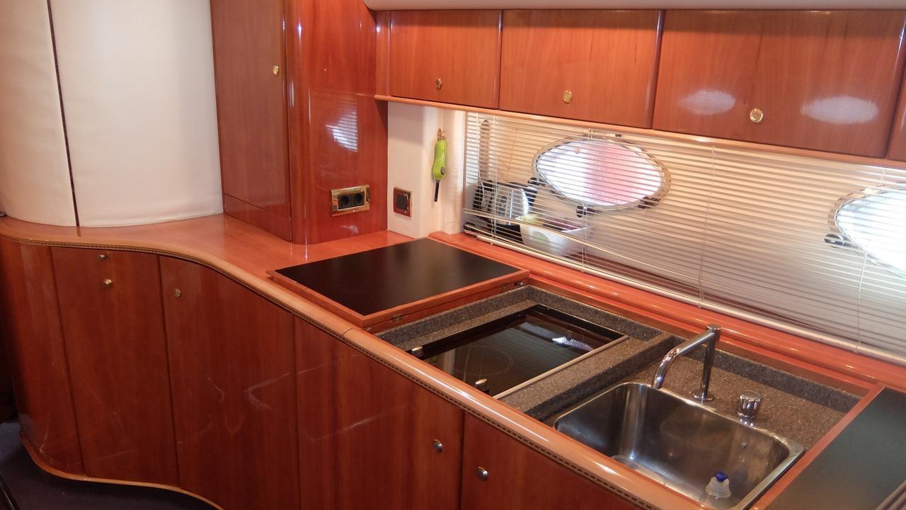 Elica di prua elettrica - aria condizionata caldo/freddo - gruppo elettrogeno Onan 12 kW - garage per tender - tender Williams 280 idrogetto - doppia scaletta da bagno - passarella elettro idraulica Opacmare - luci subacquee - microonde - piano cottura elettrico 2 fuochi - frigo/freezer - mobile bar in pozzetto con lavello, grill e frigo - antenna TV - TV LCD - plancia di poppa maggiorata come V55.