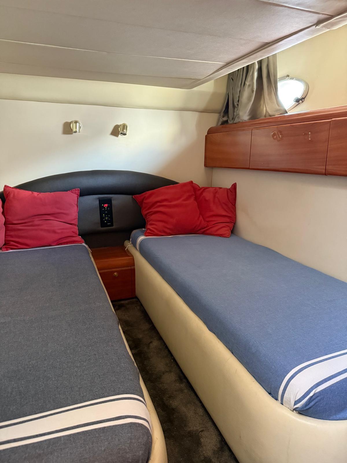 Cabina armatoriale con letto matrimoniale e bagno - cabina ospiti con due letti in piano (trasformabile in matrimoniale) - cabina ospiti con due letti in piano (trasformabile in matrimoniale) - bagno ospiti.