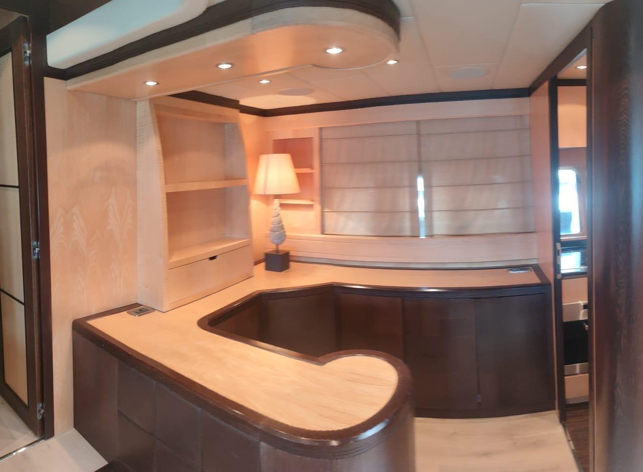 Allarme fumo/gas, Allarme motore, Allarme sentina, Alternatore, Autoclave, Bocche di Lupa, Camminamenti laterali in teak, Doccia esterna, Faro orientabile, Flap idraulici, Garage per tender, Hard top, Impianto antincendio, Indicatori Flaps, Lavaggio catena, Lavandino nel Pozzetto, Luci di cortesia, Luci subacquee, Passerella, Piattaforma, Pompa di sentina automatica, Pompa di sentina manuale, Ponte in teak, Pozzetto Teak, Presa 220V banchina, Presa acqua banchina, Raddrizzatore, Salpa Ancore Elettrico, Scaletta da bagno, Selle per Tender, Tavolo pozzetto, Tender, Tromba, Winch tonneggio di poppa.