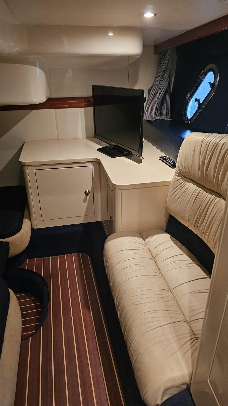 Elica di prua elettrica - aria condizionata Condaria - gruppo elettrogeno Fisher Panda 3,5 kW - antenna TV - antenna TV SAT - TV LCD - garage tender - mobile bar in pozzetto con lavello, piastra elettrica, frigo - piano cottura due fuochi a gas - frigo - microonde - passarella elettroidraulica a scomparsa Besenzoni - avvolgi cavo banchina elettrico - doppio winch di tonneggio a poppa - cassaforte.