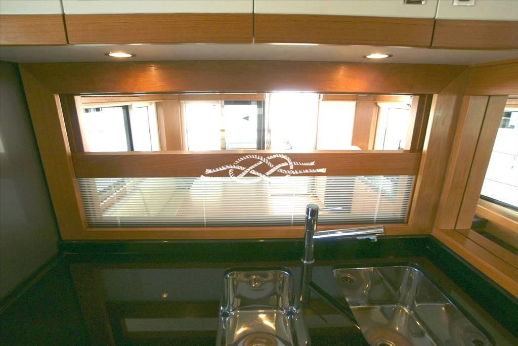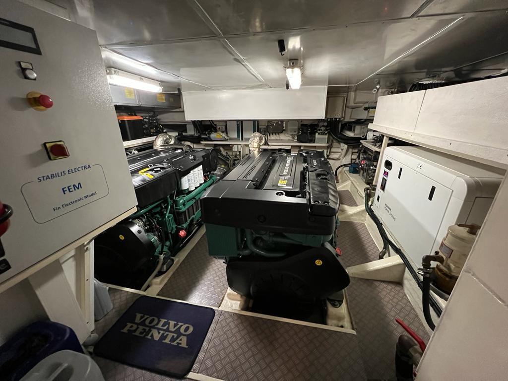 Pinne stabilizzatrici zerospeed CMC Marine - terza stazione di comando a poppa - joystick di manovra con interfaccia GPS - elica di prua Vetus - aria condizionata Condaria - gruppi elettrogeni Kohler 2 x 17 kW (230 e 770 ore moto) - dissalatore Idromar - tender con fuoribordo Suzuki 15 hp 4t - antenna SAT - frigo / freezer - frigo su flying bridge - lavastoviglie - forno Bosch - piano cottura Bosch 4 fuochi elettrico - lavatrice - TV LCD in salone a scomparsa - TV in cabina armatoriale, Vip e ospiti - Hi-Fi Bose - T-Top su flying bridge con tenda apribile manualmente - gruetta per tender sul flying bridge - luci immerse a poppa e laterali.