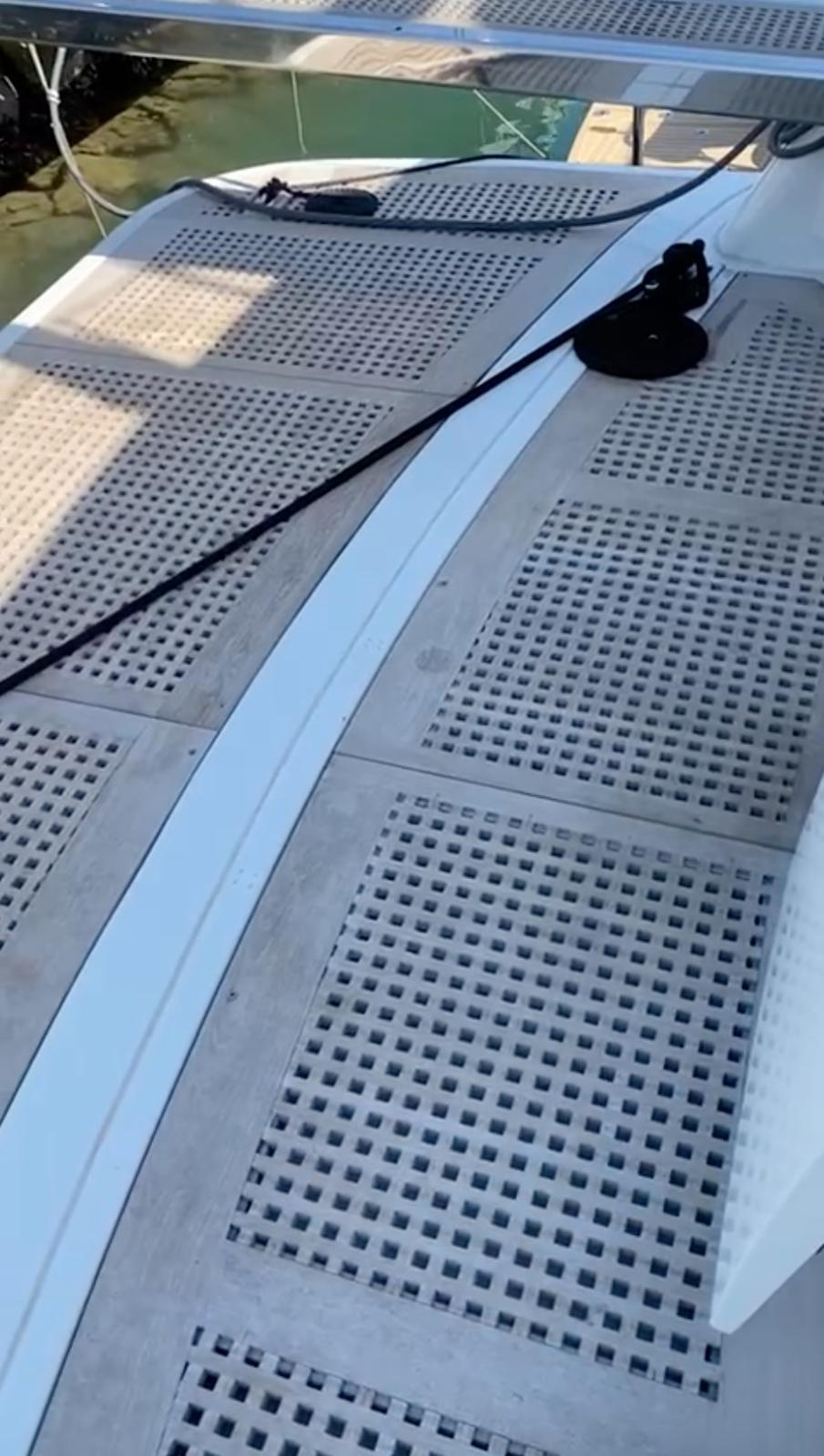 Allarme motore, Allarme sentina, 2 Ancora, Asse di rispetto, Autoclave, Camminamenti laterali in teak, Doccia esterna, Doppia timoneria, Flap idraulici, Gruette per tender su fly, Impianto antincendio, Lavaggio catena, Luci di cortesia, Luci subacquee, Passerella, Piattaforma, Pompa di sentina automatica, Porta ingresso, Porta laterale, Pozzetto Teak, Presa 220V banchina, Presa acqua banchina, Salpa Ancore Elettrico, Scaletta da bagno, Tavolo pozzetto, Tender (Zodiac 4,20 m con FB Mercury 20 hp), Tromba, Winch tonneggio di poppa.