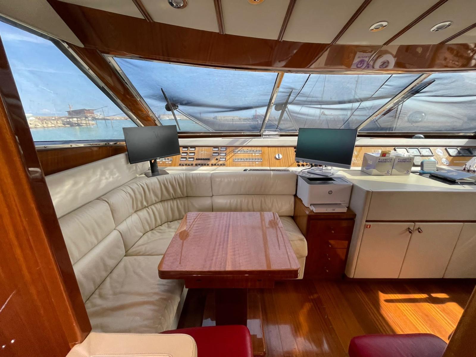 Lavori 2019/2020: accesso sala macchine da poppa - sostituzione di tutti i wc con moderni Tecma - tutte luci LED - smontaggio, verifica, equilibratura linee d'asse (assi e cavalletti) ed eliche - sostituzione delle boccole dei cavalletti - pulizia scambiatori di calore motori principali - revisione turbine - realizzazione di due sportelli laterali al pozzetto per l'accesso a bordo quando si ormeggia a murata - sostituzione di tutte le batterie (motori, servizi, gruppi elettrogeni) - sostituzione di tutti i mobili e elettrodomestici della cucina - sostituzione delle due ancore di ormeggio e relative catene - realizzazione di un bimini top fisso sulla postazione di guida del flying bridge - sostituzione di tutte le casse acque grigie e nere - ristrutturazione alloggio equipaggio - istallazione nuovo dissalatore Idromar - sostituzione manette con elettroniche - istallazione elica di poppa - nuovi caricabatterie e inverter - revisione di tutte le pompe di bordo - terza stazione di comando a poppa più quarta stazione wireless - sostituzione di tutte le prese a mare e valvole - sostituzione tenute idrauliche assi.