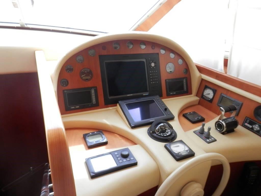 Elica di prua e di poppa Side Power - antenna SAT Seatel - TV LCD a scomparsa nel salone - mobile bar con ice maker, lavello e piastra su fly - luci subacquee sotto pedana di poppa - lavastoviglie Miele - forno Miele - piano cottura Miele - frigo freezer Miele - tender Novamarine 4 m. con fuoribordo Yamaha 40 hp 4t.