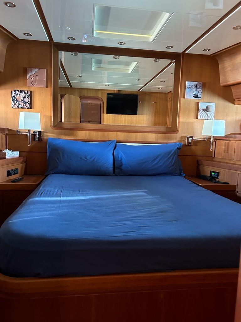 Cabina armatoriale con letto matrimoniale ,cabina armadio e bagno - cabina Vip on letto matrimoniale e bagno - cabina ospiti con due letti in piano, terzo letto a scomparsa e bagno - cabina ospiti singola con letto a scomparsa e bagno.
