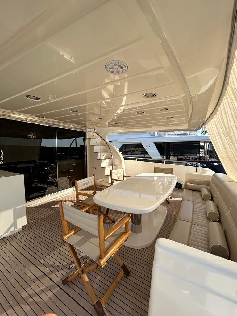 Allarme fumo/gas, Allarme motore, Allarme sentina, Autoclave, Camminamenti laterali in teak, Flap idraulici, Gruette per tender su fly, Impianto antincendio, Indicatori Flaps, Luci di cortesia, Luci subacquee, Passerella, Pompa di sentina automatica, Porta ingresso, Porta laterale, Pozzetto Teak, Presa 220V banchina, Presa acqua banchina, Raddrizzatore, Rollbar, Salpa Ancore Elettrico, Scaletta da bagno, Tavolo pozzetto, Winch tonneggio di poppa, Winch tonneggio di prua.