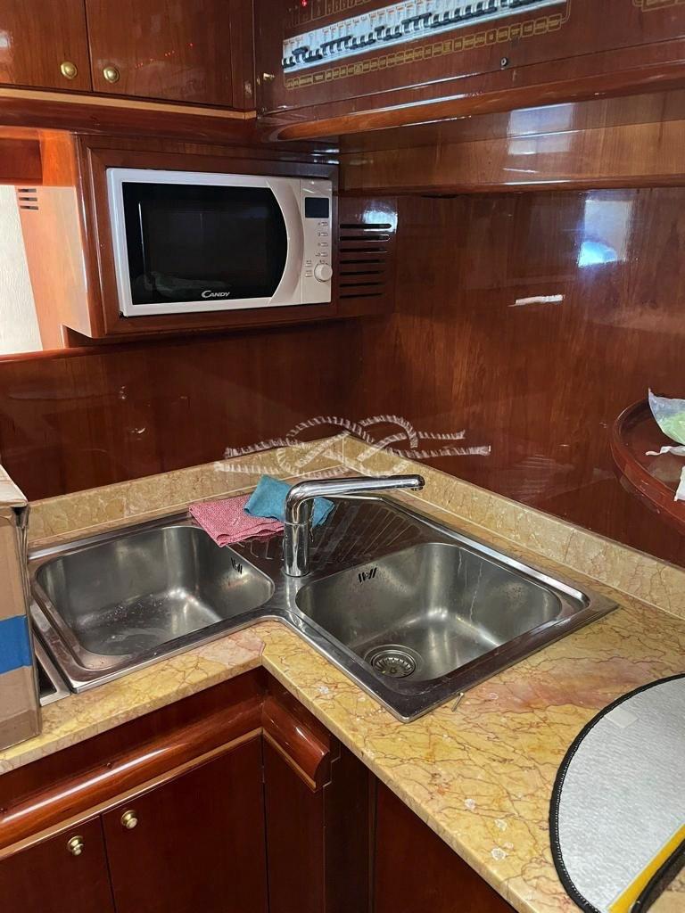 Passerella elettro-idraulica - telecamera sala motori (2022) - antenna SAT TV Seatel - antenna TV Glomex - TV LCD a scomparsa nel salone - TV LCD cabina armatoriale - microonde - piano cottura elettrico tre fuochi - frigo - mobile bar nel pozzetto con lavello, piastra elettrica due fuochi - elica di prua elettrica - gruppo elettrogeno Kohler 8 kW - aria condizionata.