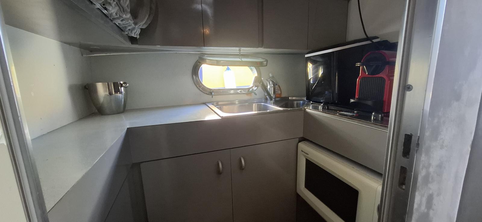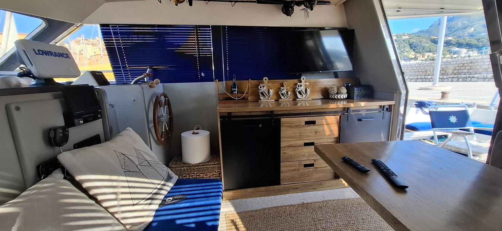 WC : ELECTRIQUE RI RI CONCORDIA Année : 1984 Longueur (m) : 11.45 Largeur (m) : 3.72 Motorisation : 2 x 320 cv IB Turbo Diesel Visible : Méditerranée Pavillon : Français Chantier : RI RI (ITALIE) Modèle : Vedette - Croisière Familiale - Coque Polyester -COCKPIT EN FLEXI TECK - Fly Bridge - Eq. Pêche - Cockpit central- ASSISES COCKPIT- ROLLBAR SUR FLY Confort : 4 Couchages - 1 Cab. Avant Double - 1 Cab. Lat. Double - La cabine de propriétaire, qui occupe l'avant du bateau, possède un véritable lit double Motorisation : IVECO - Ligne d'arbre - REFAIT A NEUF LES 2 MOTEURS Carburant : DIESEL réservoir Inox - Capacité totale : 800 Litres Equipements :Flaps electrique benette-GROUP ELECTROGENE PAGURO 3KW NEUF Electricité : 6 Batterie(s) 12 V / 140 Amp/H NEUVES Chargeur Auto - Circuit 220 V intérieur- PASSERELLE HYDRAULIQUE Eau : Sous-pression - Eau Chaude - BALLON D'eau chaude 40L- Prise d'eau direct Toilettes : 1 WC MARIN electrique- 1 douche(s) - Douche de pont Cuisine : - Micro-onde -1 Frigo - PLAQUE ELECTRIQUE Divers : Hifi ? TV salon cabine - Electronique : Centrale de navigation : - Sondeur - Loch/Speedo- VHF HURRICANE CAMERA DE VISION SALLE DES MACHINES Sécurité : Catégorie de conception Cat B - Niveau d'armement Côtier complet - Sellerie : Taud Hiver bain de soleil - Taud de soleil - Kit camping - Taud pare-brise - Bain de soleil - sellerie de cockpit recente - Taud de Camping Neuf - selleries en parfait état Mouillage : Guindeau électrique - Divers : Echelle de bain - Jupe / Pl.Forme AR - Passerelle Hydraulique Observations : A saisir unité de très bonne qualité cosmétique , esthétique et très équipé group- passerelle hydraulique à bord. Unité très polyvalente , idéal pour les croisières Hauturière grâce à sont excellent passage en Mer et sa mécanique fiable et réputé pour sa robustesse ( Iveco). Excellent rapport poids puissance, vitesse de croisiere 18Nds... La timonerie est bien conçue, avec un salon face à un bloc-cuisine complet . Il comprend un évier,plaque electrique , 1 réfrigérateur de 80 litres et un four à micro-ondes. Voici un vrai bateau de croisière qui réussit à présenter une ligne sportive tout en montrant des qualités marines très saines et une habitabilité remarquable, le tout dans moins de 12 mètres. Rien à prévoir en partie mecanique ( coudes, échangeurs, échappements , réservoirs neuf) Possibilité de place de Port Etat général : 5/5 Qualité/ Prix : 5/5 Sud Plaisance Consulting membre de l'accord AFNOR de 2006 et Leader du courtage en bateaux d'occasion depuis 10 ans . Choisir Sud Plaisance consulting pour l'acquisition de votre bateau c'est l'assurance d'une méthodologie éprouvée et basée sur l'accord afnor AC X50-828 . Conseils objectifs , transaction encadrée , aide à la recherche de place de port , de Financement , de transport et convoyage . Mise en main personnalisée . ---------------------------------------------- Sud Plaisance Consulting MOUTTE Sébastien Sébastien Moutte consultant & Négociant ACCORD AFNOR AC X50 828 84 rue de la frégate 83600 Fréjus Mobile: + 33 (0)6 41 36 15 69 @: * http://www.sud-plaisance.pro EXPERT MARITIME /OMC/VOLVO/ MERCRUISER/ POLYESTER. ACCORD AFNOR AC X50 827 ------------------------------------------