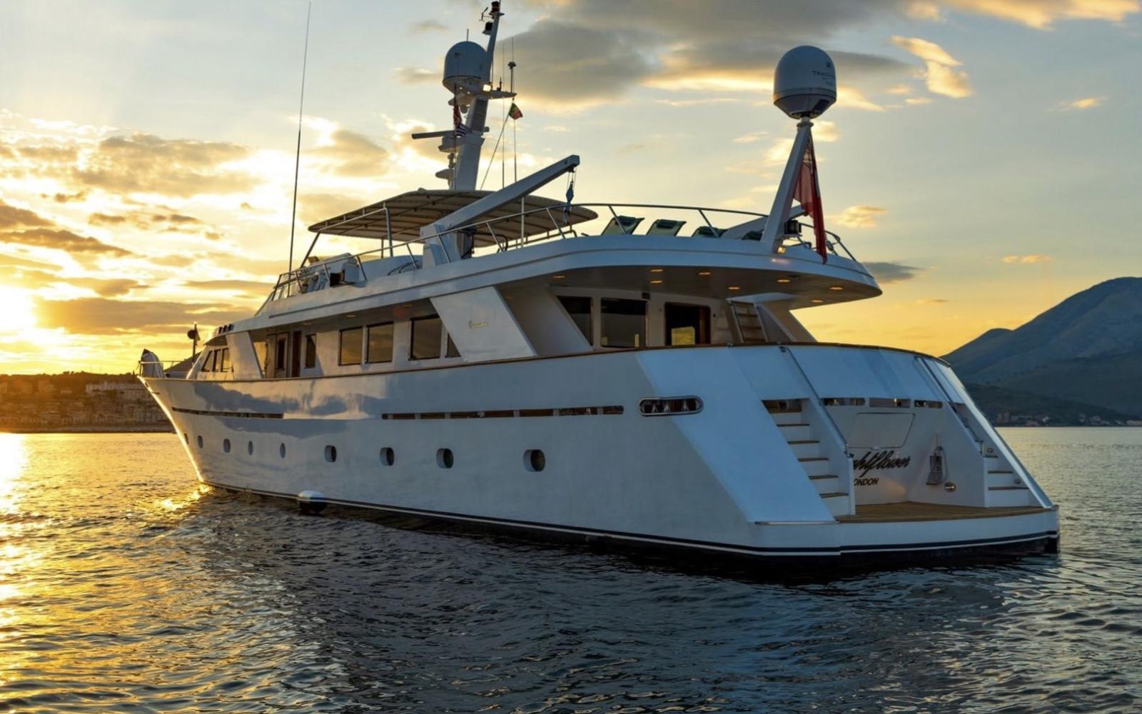 Aria condizionata - passerella elettroidraulica - tender Sacs 5,20 m. - tender Williams jet - moto d'acqua Sea Doo 900 HO - stabilizzatori zerospeed Siemens - elica di prua - n. 2 generatori Caterpillar da 60 kW - generatore Northern Lights 24 kW.