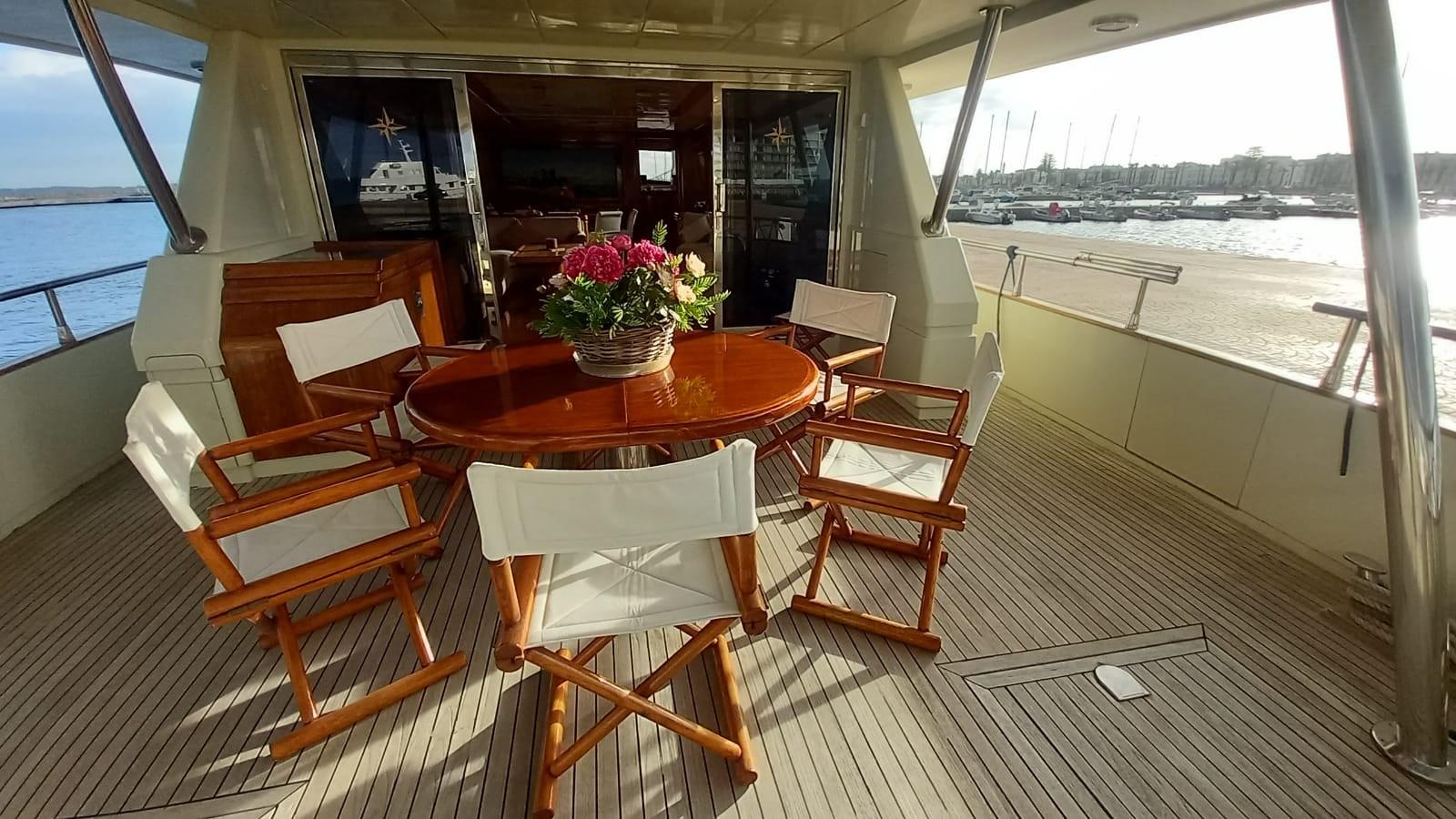 Lavori 2022 - 2023: rifacimento teak flying bridge - rifacimento divani flying bridge - nuove tappezzerie esterne Sunbrella e spugne copri cuscini - nuova moquette - nuove tende - rifacimento sportelli cucina - nuovi elettrodomestici cucina (piano cottura, forno, frigo, cappa, lavastoviglie) - manutenzione ordinaria motori e gruppi elettrogeni - nuove batterie servizi e motori - nuove batterie elica di prua - nuovi interruttori luci interne ed esterne - revisione pistoni flap - nuove luci LED subacquee - revisione passerella con sostituzione scheda, pompa e sensori.