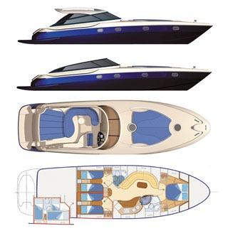 Elica di prua - passerella idraulica - aria condizionata - generatore 9 kW - impianto TV SAT - cuscini prendisole - tendalino - mobile pozzetto con frigo lavello e piastra cottura - portello motori con apertura elettro-idraulica.