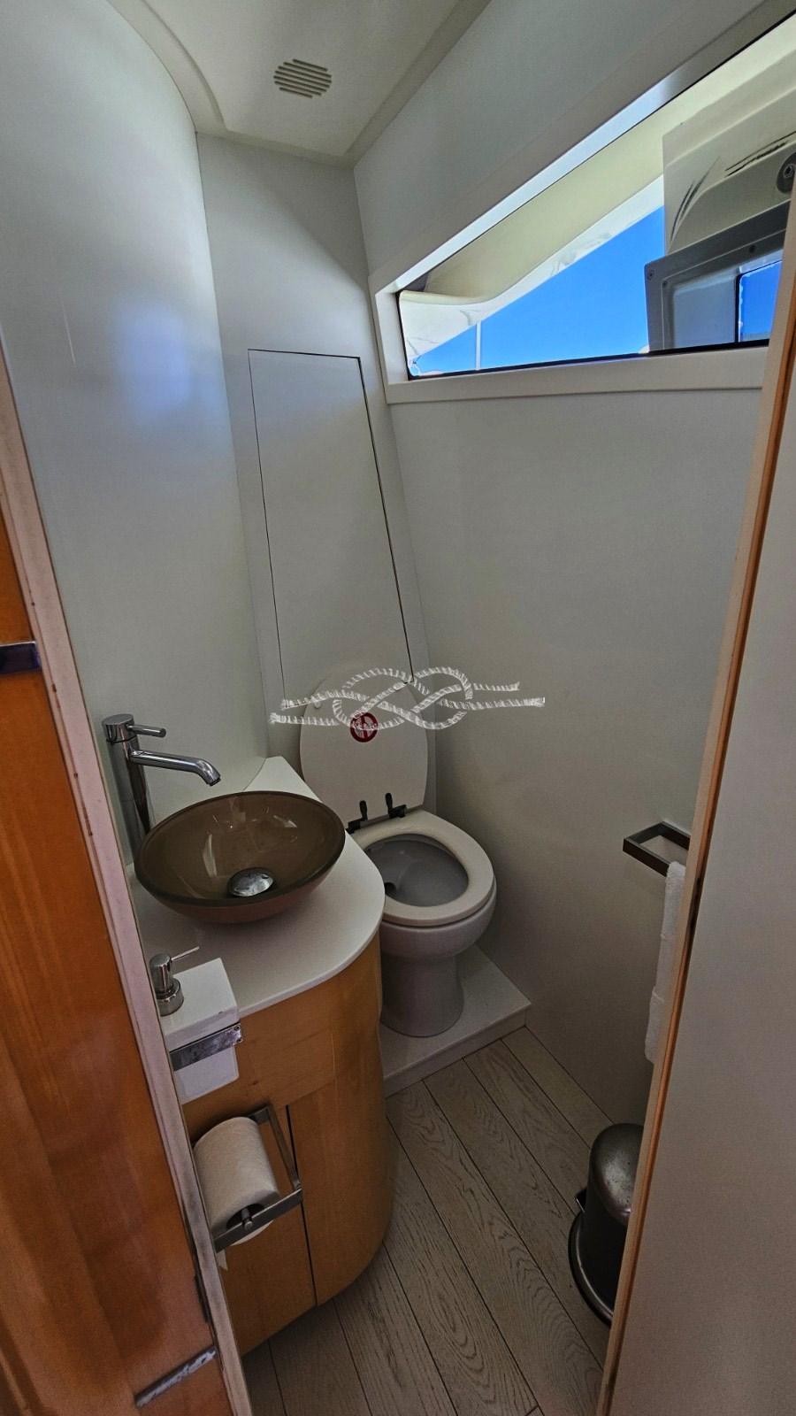 Alloggio equipaggio a prua con singola separata e doppia con letti a castello - bagno.