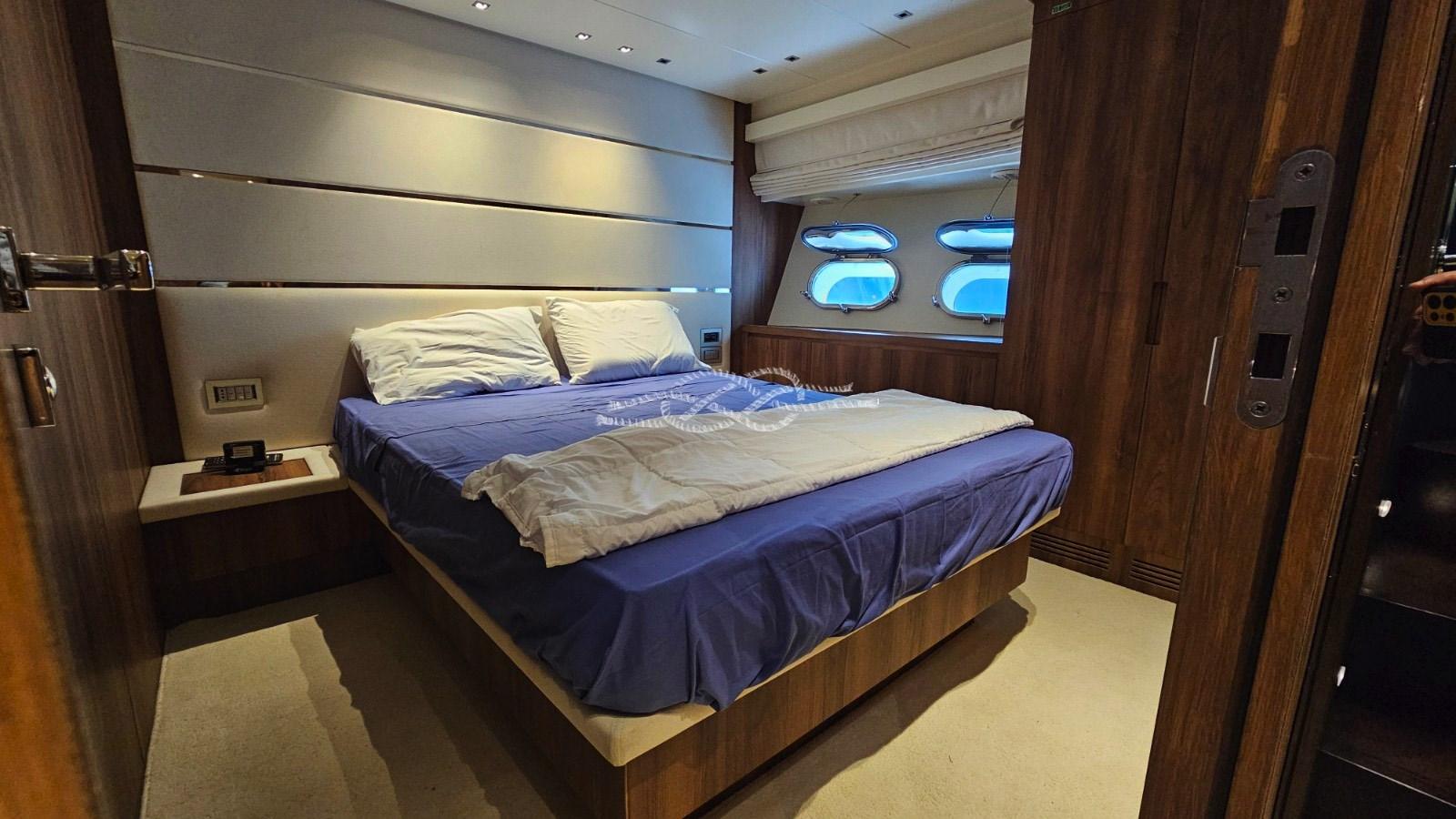 Cabina armatoriale con letto matrimoniale, cabina armadio e bagno - cabina Vip con letto matrimoniale e bagno - cabina ospiti con due letti in piano e bagno - cabina singola con bagno.
