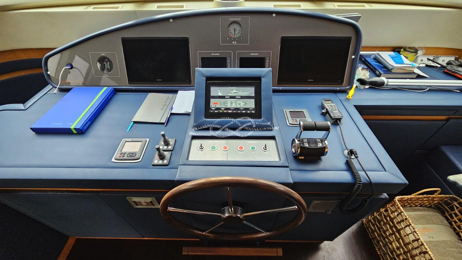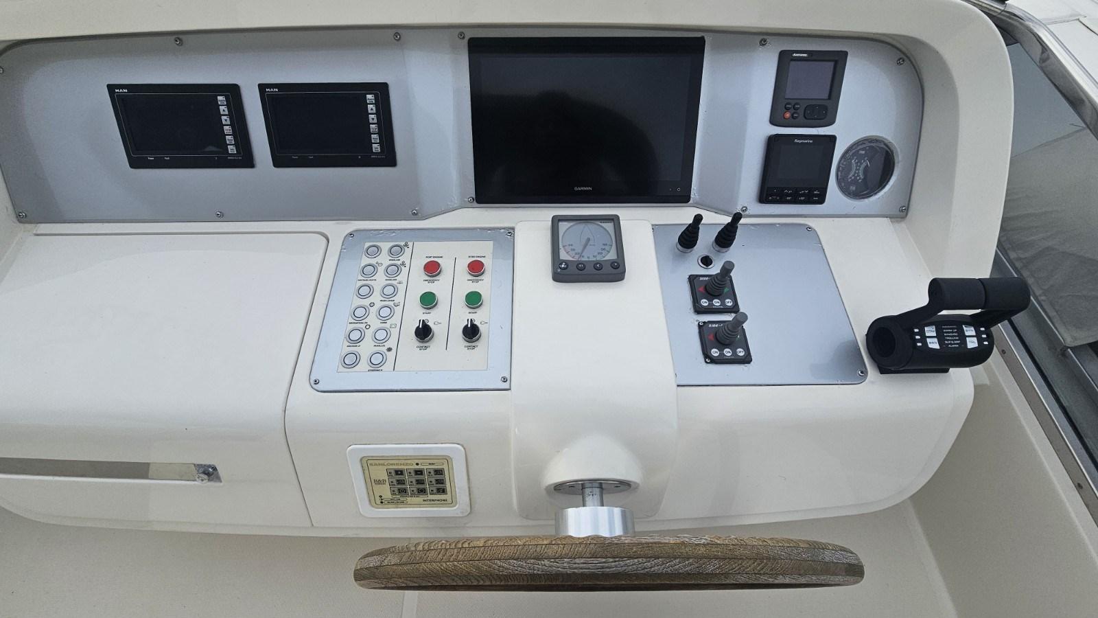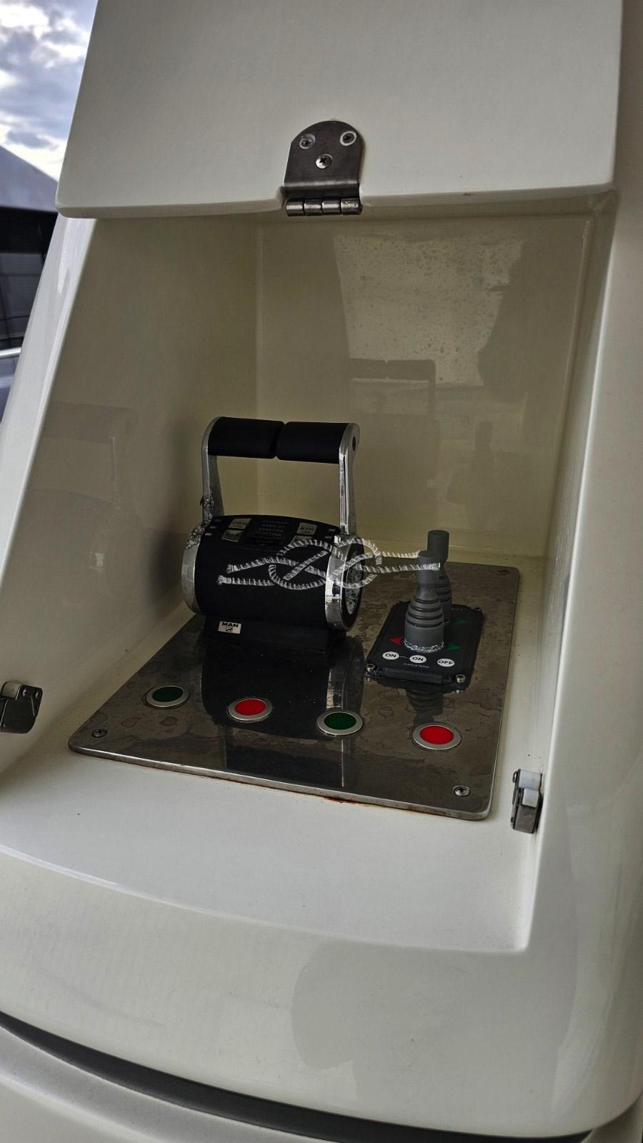 Elica di prua e di poppa elettriche - pedana di poppa tender lift - T-top con tendalino apribile sul flying bridge - terza stazione di comando a poppa - aria condizionata Frigomar - gruppi elettrogeni Kohler 2 x 20 kW - antenna TV SAT - TV LCD (in tutte le cabine, a scomparsa in salone) - frigo doppio in salone - frigo/freezer - piano cottura induzione 4 fuochi Miele - lavastoviglie Siemens - lavatrice - forno - domotica controllo utenze, livelli, impianti di bordo - tender jet - mobile bar sul fly con lavello e frigo - TV a scomparsa sul fly.