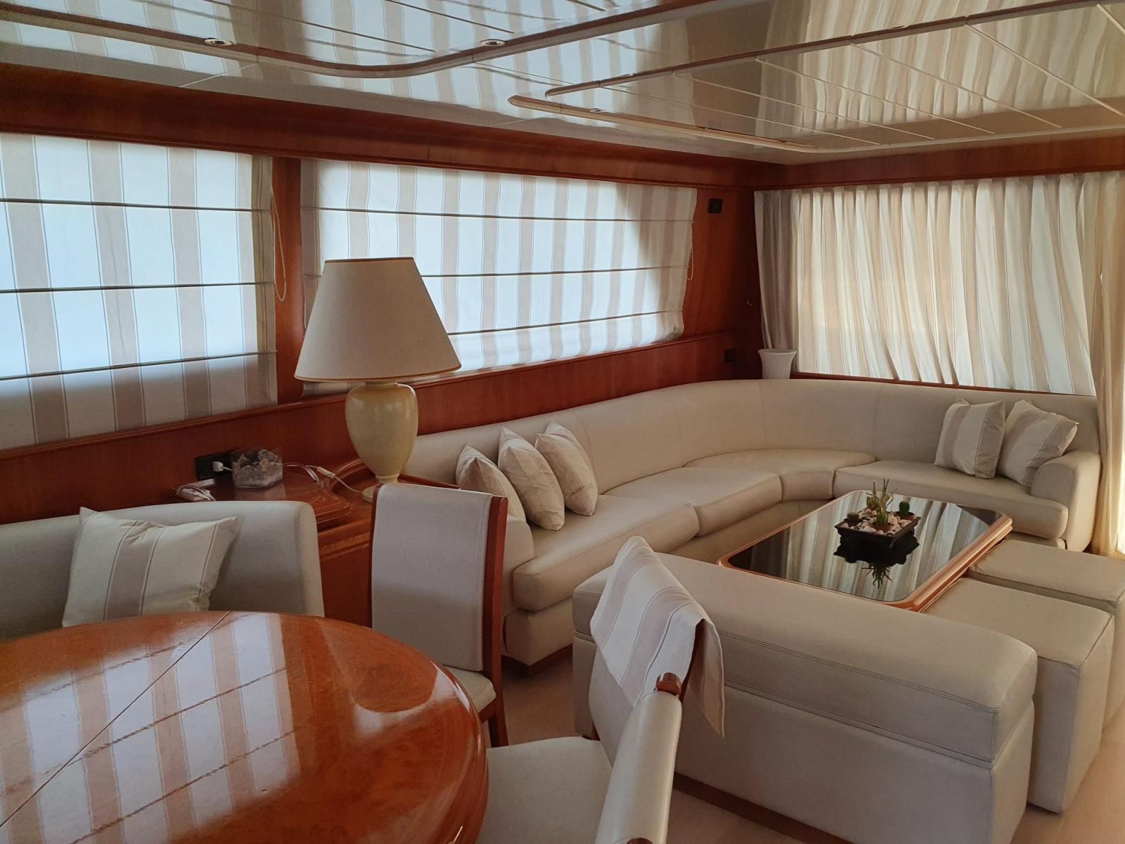 2020: verniciatura completa dello scafo e della sovrastruttura - nuovo teak 15 mm - nuova cuscineria esterna, divani fly, testiere letti, tende e moquette - sostituzione dei tonneggi di poppa nuovi e revisione verricello salpancora - revisione dissalaltore.