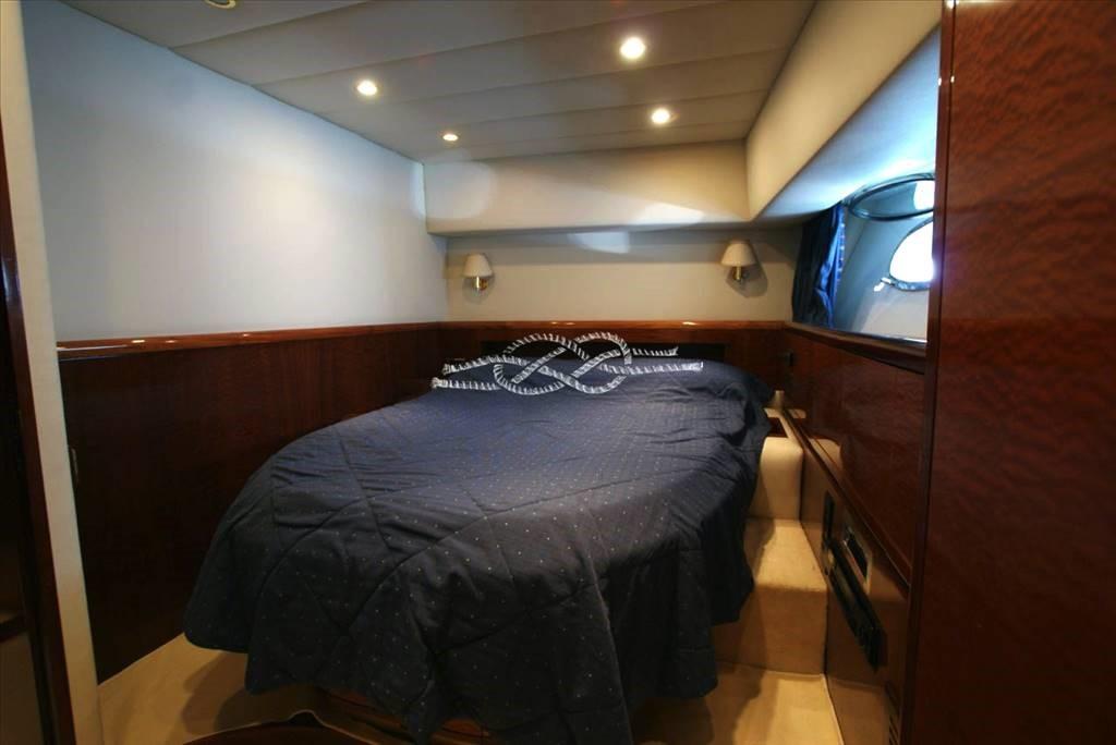 Cabina armatoriale a centro barca con accesso esclusivo, letto matrimoniale, cabina armadio e bagno - cabina Vip a prua con letto matrimoniale e bagno - cabina ospiti con due letti in piano - bagno ospiti.