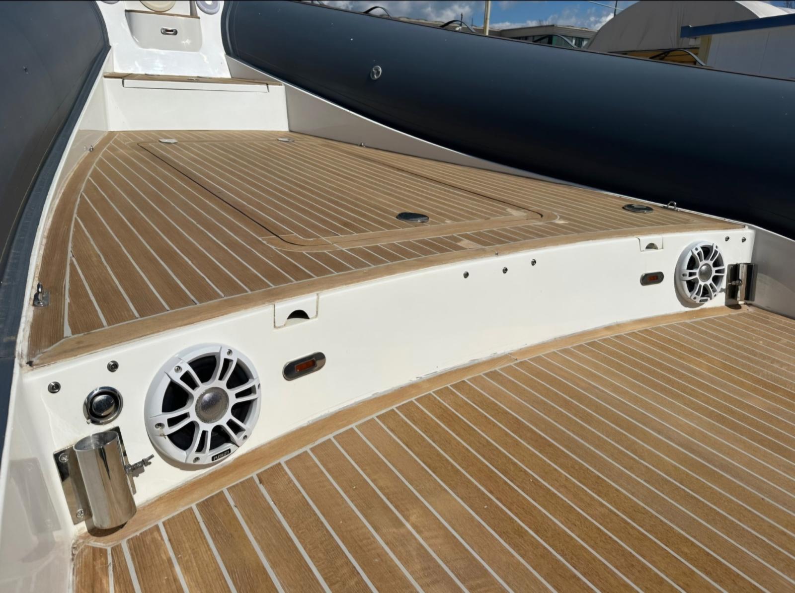 Allarme motore, Apertura Vano Motore Elettrica, Autoclave, Doccia esterna, Lavandino nel Pozzetto, Luci subacquee, Piattaforma, Pozzetto Teak, Presa 220V banchina, Salpa Ancore Elettrico, Scaletta da bagno, Tavolo pozzetto, Tromba.