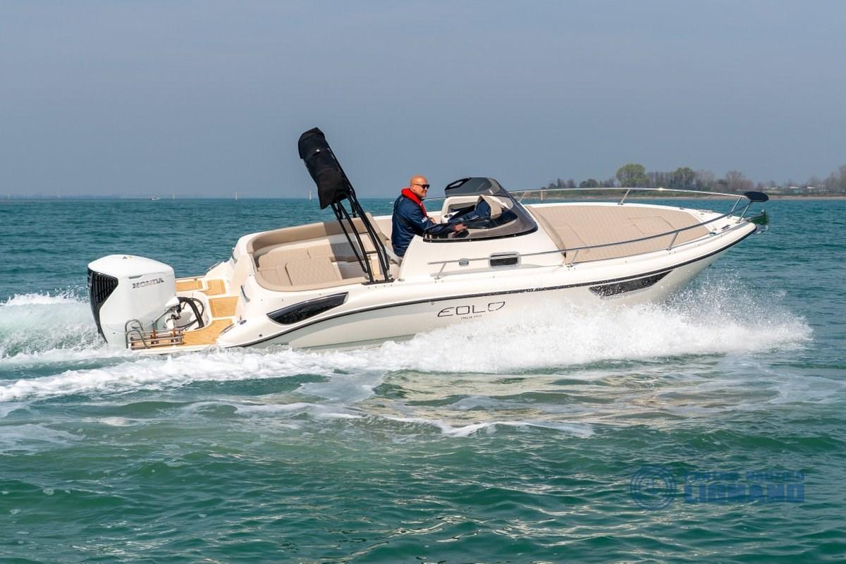 La barca è perfetta per chi vuole viversi il mare in tutte le sue sfaccettature non rinunciando alla comodità, Eolo 7.9 EL è un modello giovane e dal design elegante. Comodo prendisole di prua e divanetti con tavolino a poppa per i pranzi durante le vostre gite. Il sottocoperta è dotato di tutti i comfort e due comodissimi posti letto con un design assolutamente non scontato, locale wc separato.