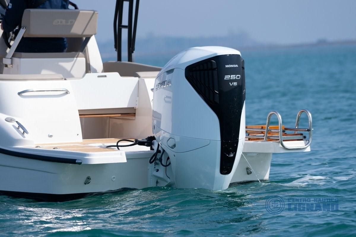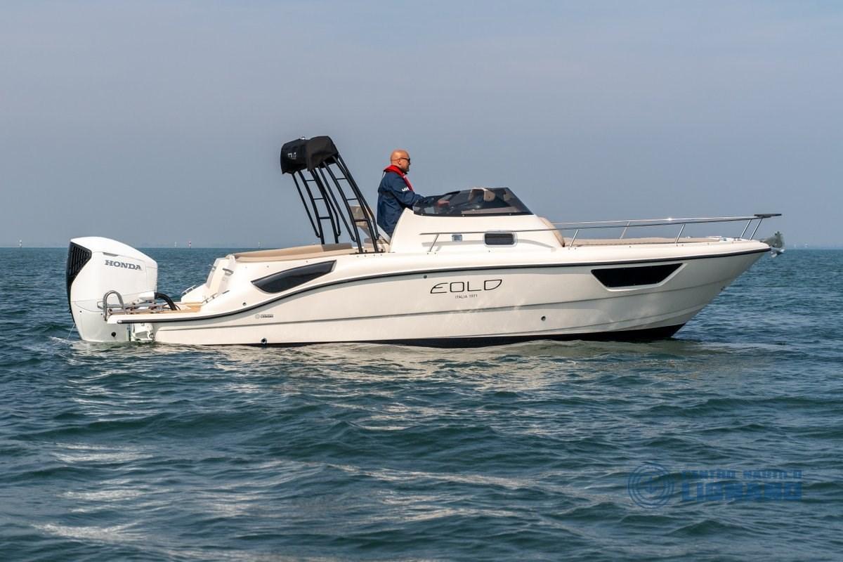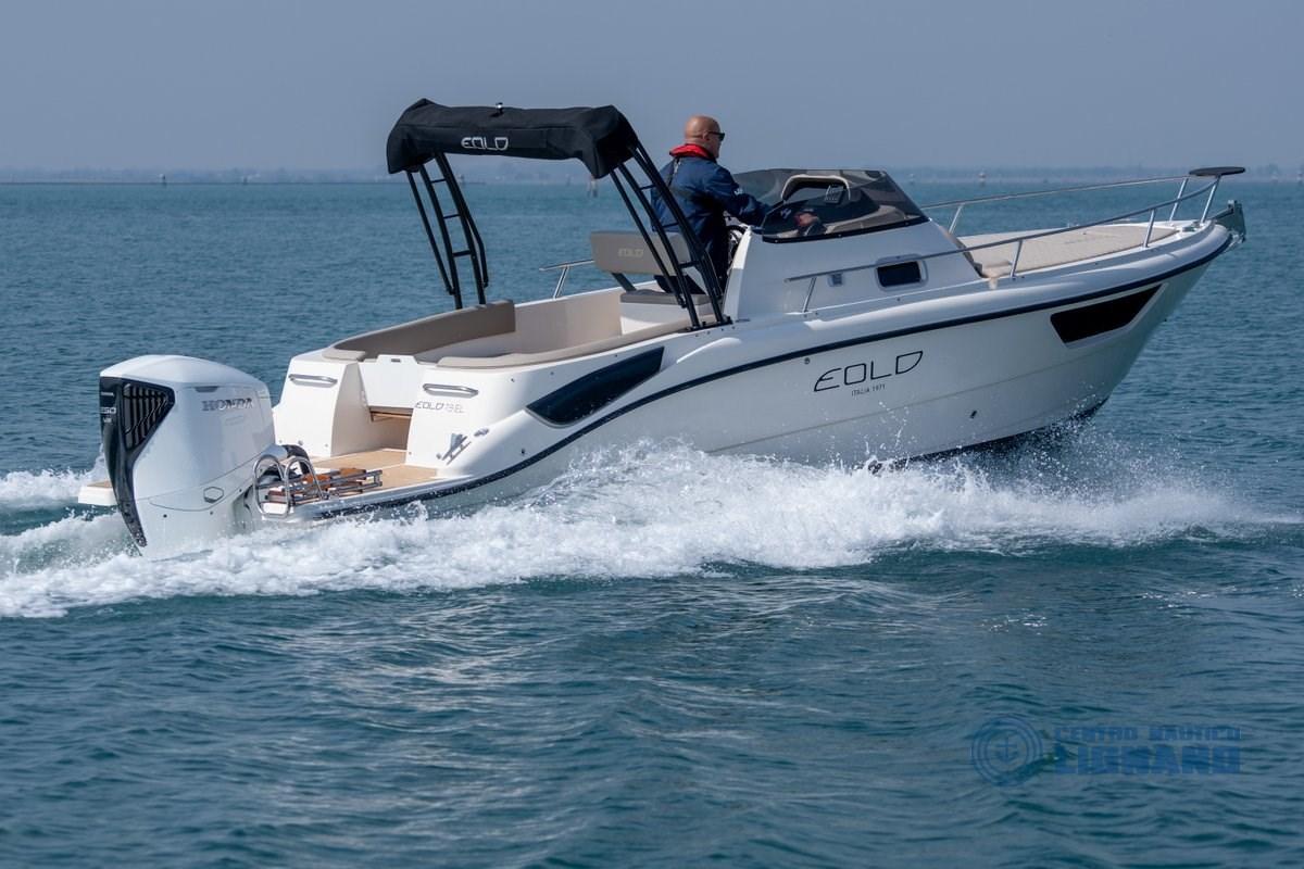 Nuovissima Eolo Marine 7.9EL 2026 pronta consegna e visibile presso nostra sede Centro Nautico Lignano, completa di motore nuovo Honda Marine BF250AK1 2026 Total White. Una combinazione vincente e di alto impatto estetico.
