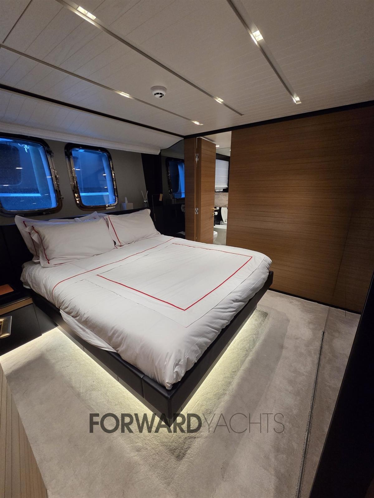 Zona notte: 5 cabine (1 armatoriale sul ponte principale) + 3 cabine equipaggio.