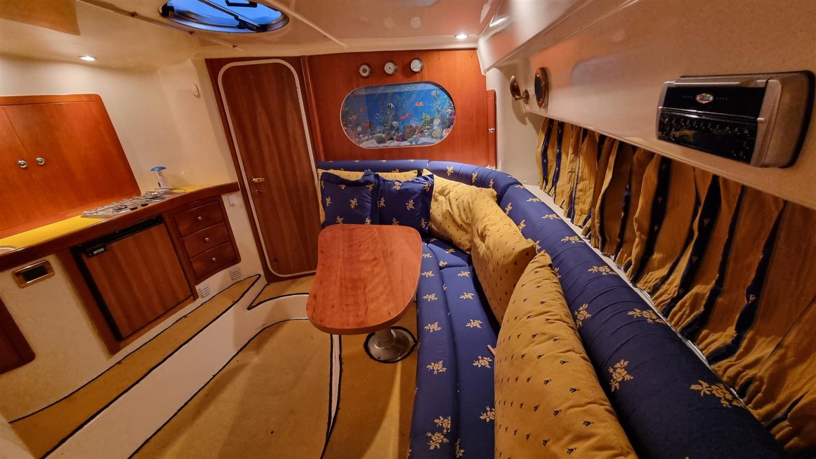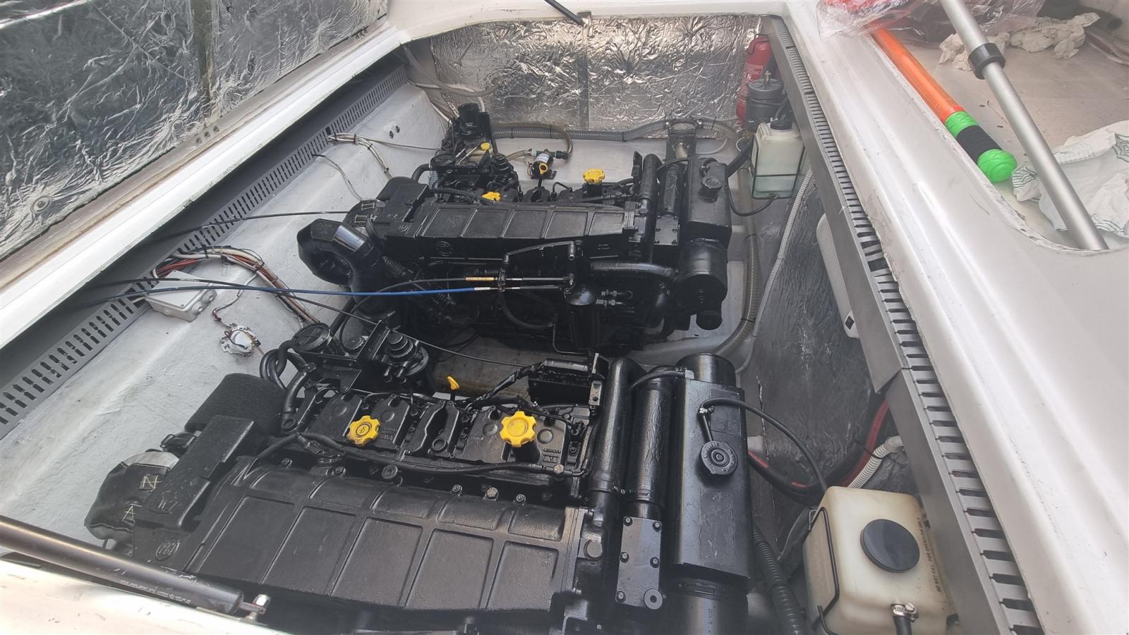 imbarcazione pari nuovo, e' stato fatto un importante refit nel 2024 : lucidatura completa scafo e coperta . riverniciata la fascia laterale grigia , antivigetetativo , pulizia sentine e riverniciatura completa , nuova finestratura laterale , totale rifacimento della cuscineria ( poppa, prua , sedile di guida e divano del tavolo nel pozzetto , levigatura teak nella plancetta , tendalino nuovo , batterie e staccabatterie nuove , verricello elettrico nuovo , caricabatterie nuovo , gps cartografico nuovo ultima generazione. Boiler nuovo, sostituzione di tutte le prese a mare , sostituzione di tutte le tubazioni gasolio e acqua , insonorizzazione motori nuov,a pompe di sentina nuove , nuova tubazione del gas della cucina , luci subacquee rgb a led , interruttori plancia nuovi , cruscotto riverniciato , angolo di barra nuovo , strumento livello gasolio nuovo , impianto stereo fusion nuovo, vhf nuovo Motori rifatti a zero ore ,piedi revisionati completamente ,eliche in acciaio.